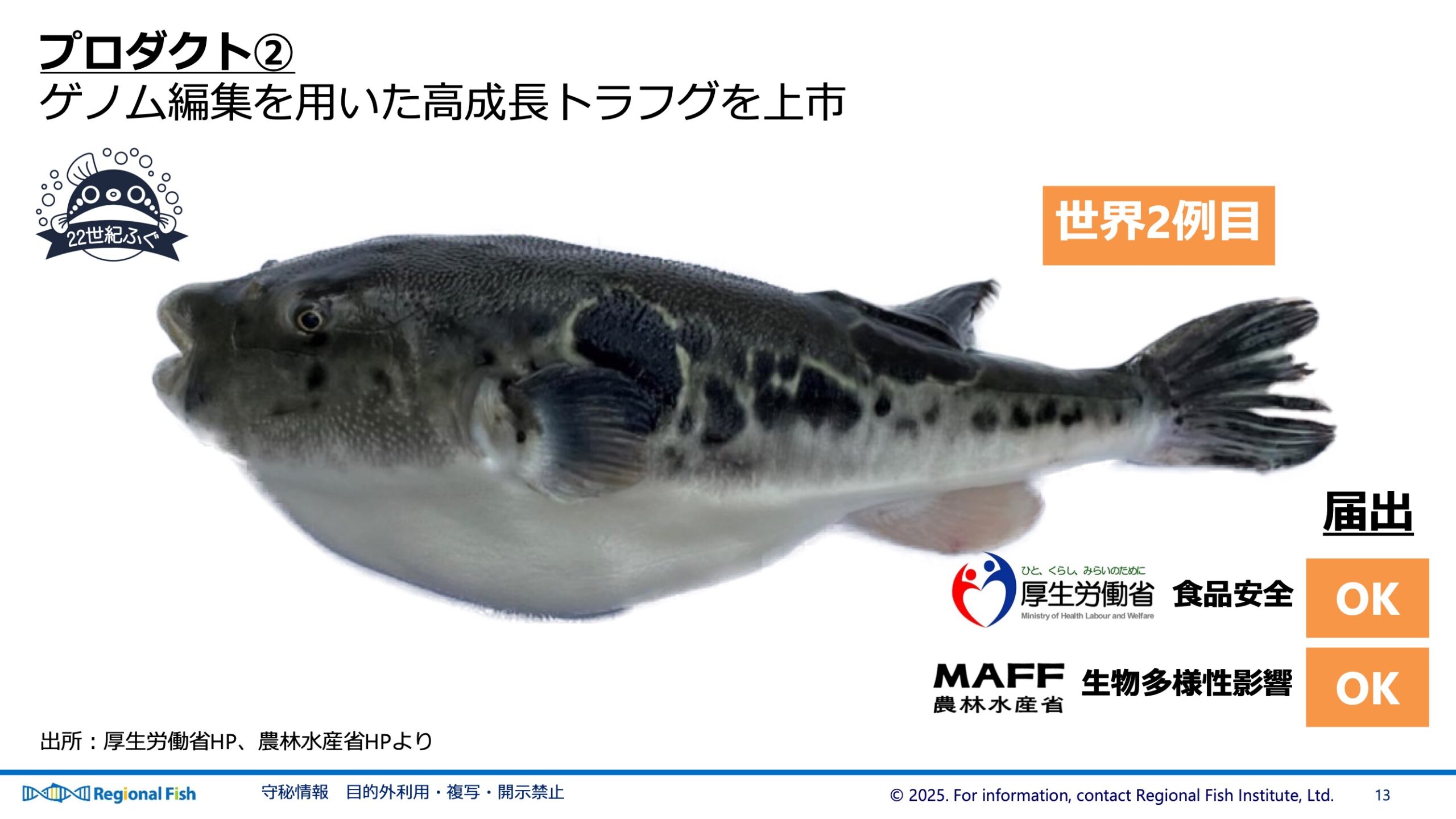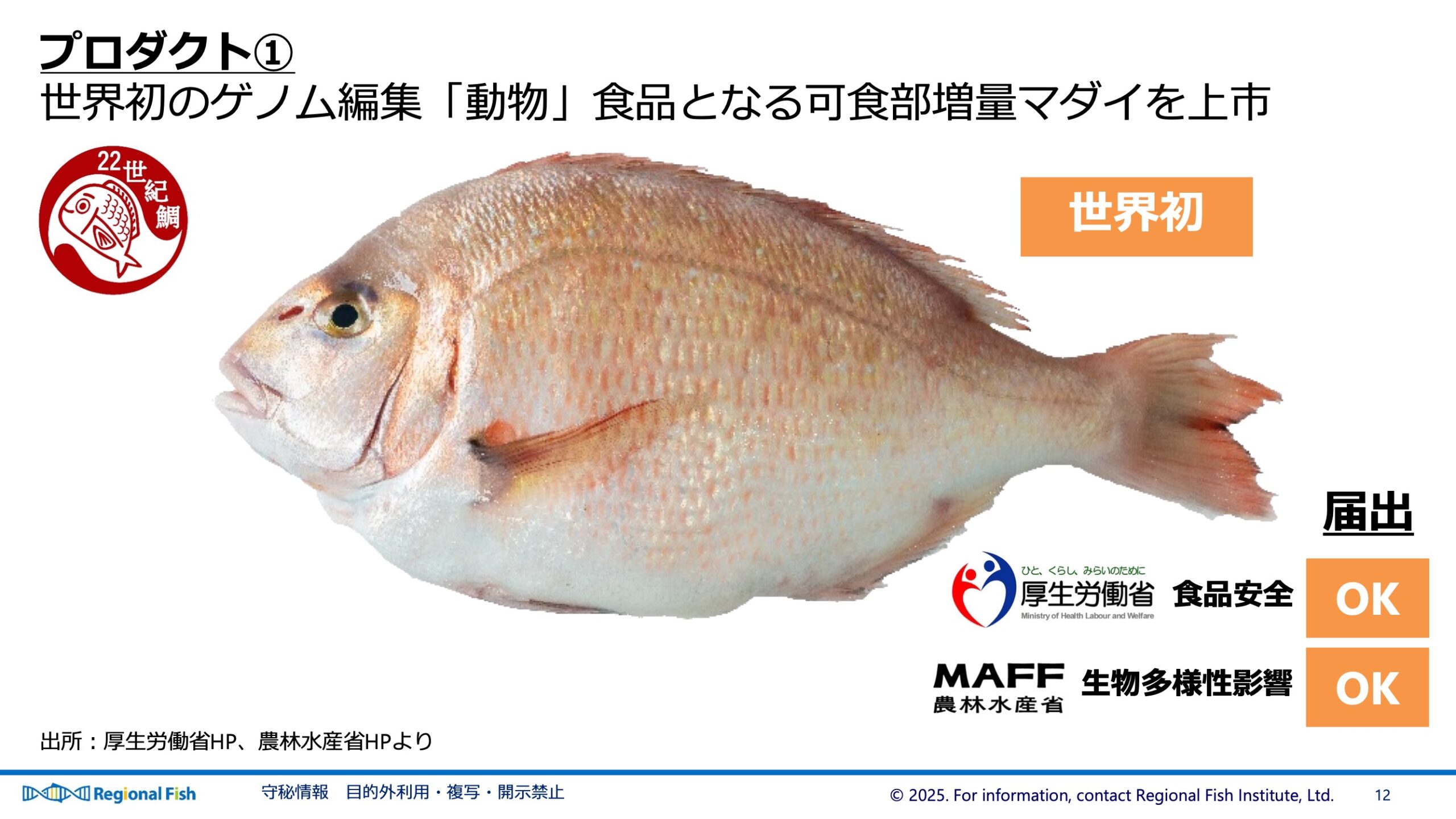 厚生労働省に食品安全を、農林水産省に生物多様性への影響がないことを確認してもらい、世界初のゲノム編集「動物」食品として販売しました。