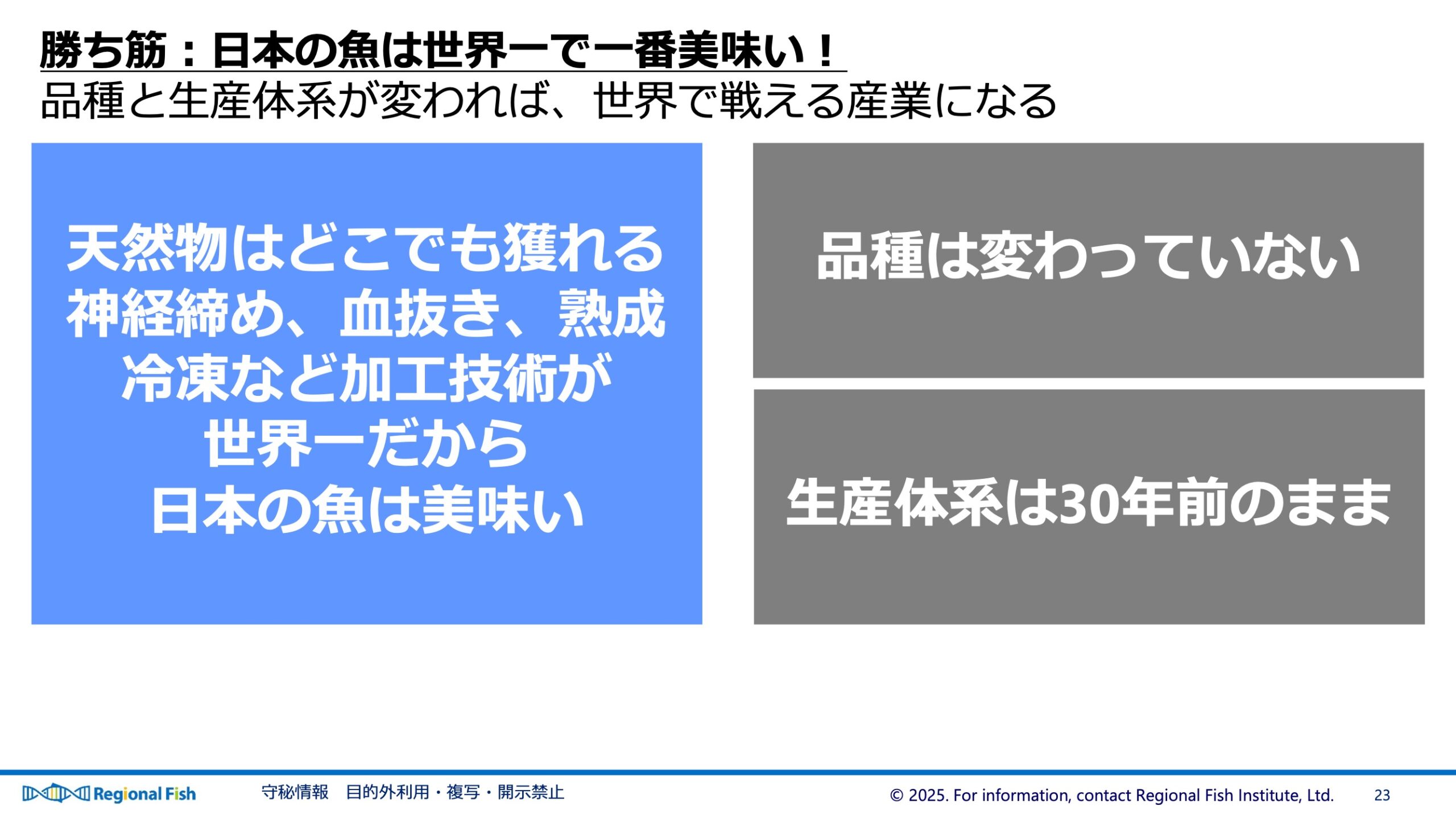 ただ、将来的には、水産物であっても品種を変えたほうがいいよねと言われる未来が来るのではないかと信じています。