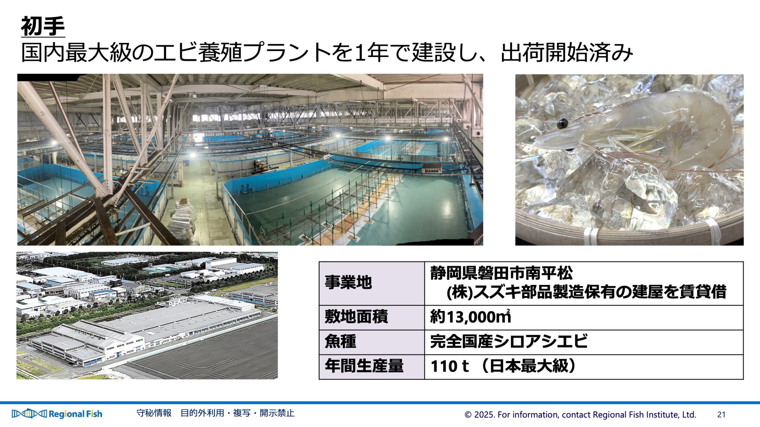 最初は、静岡県磐田市にあるスズキ部品製造の工場を居抜きで借りて、1年間で日本最大のエビ養殖プラントを立ち上げました。
