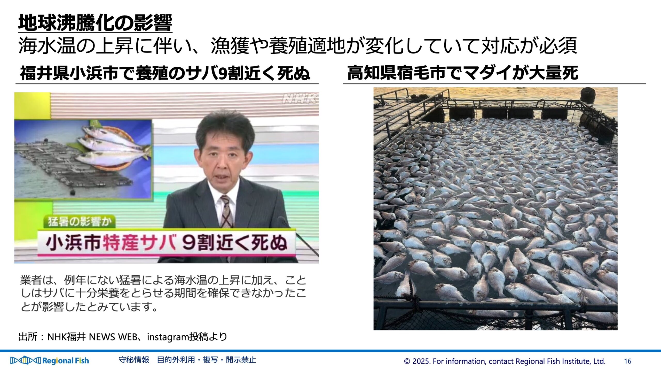 今まで名産品だった魚を育てることができないという問題に直面しています。