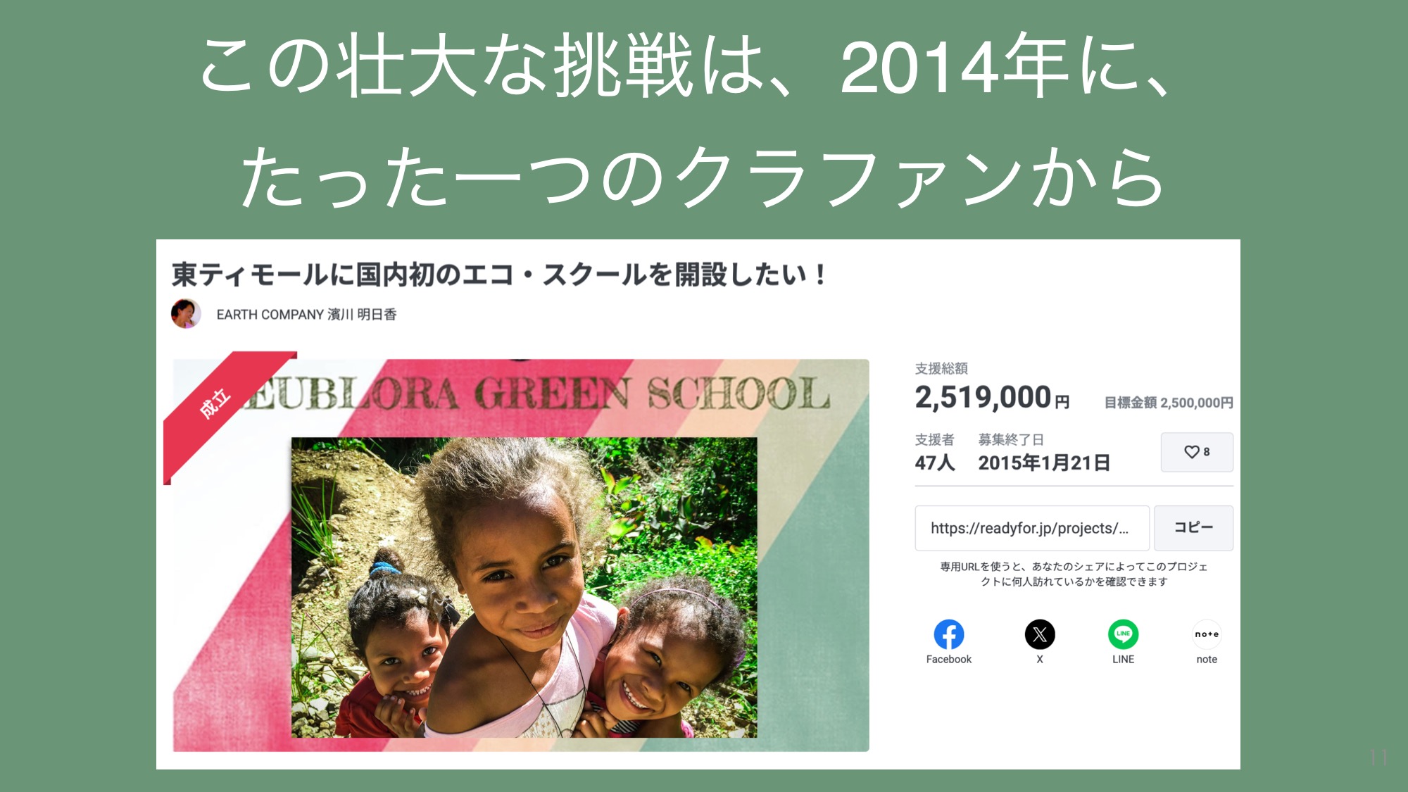 ▶東ティモールに国内初のエコ・スクールを開設したい!(READYFOR)