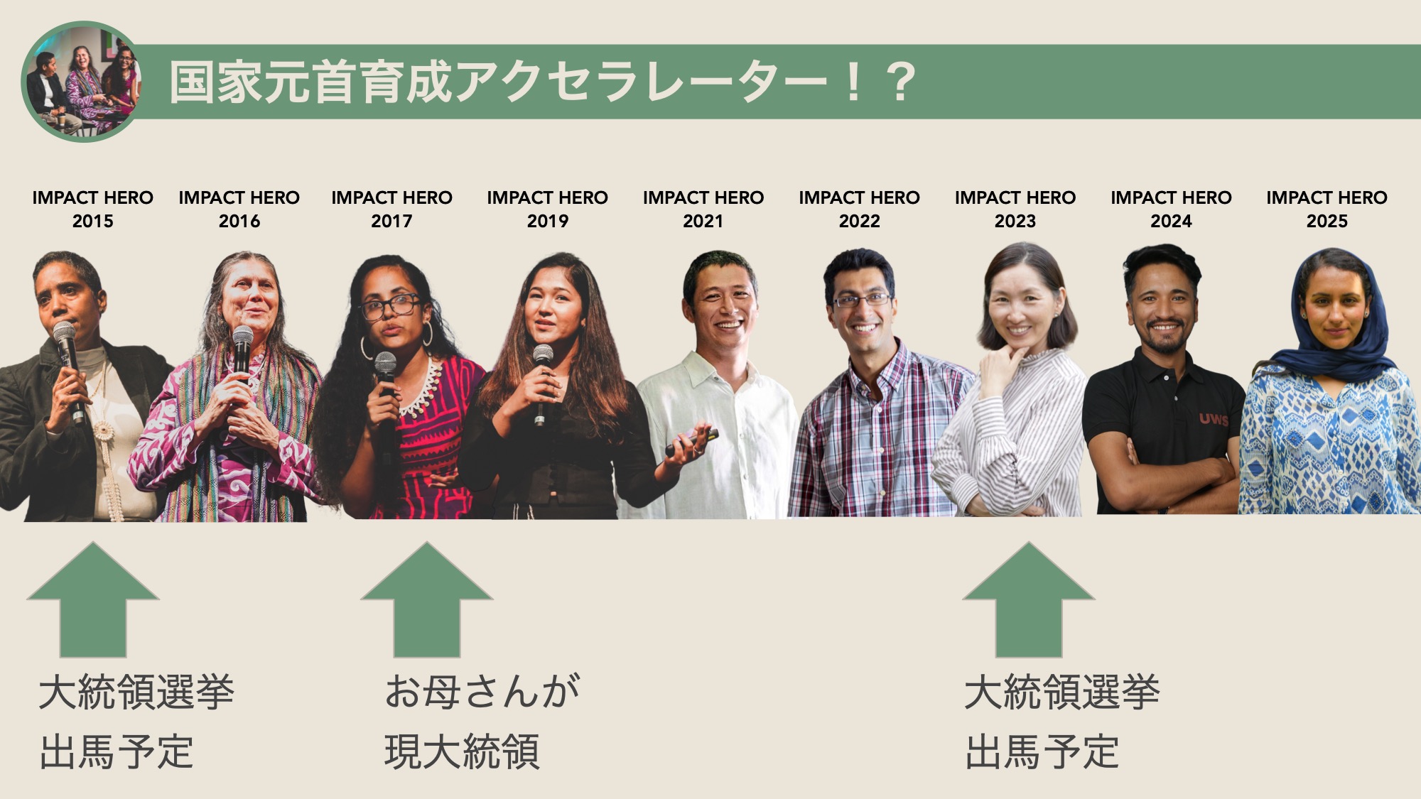 支援事業は、半分冗談・半分本気で、国家元首の育成アクセラレーターになりつつあります。