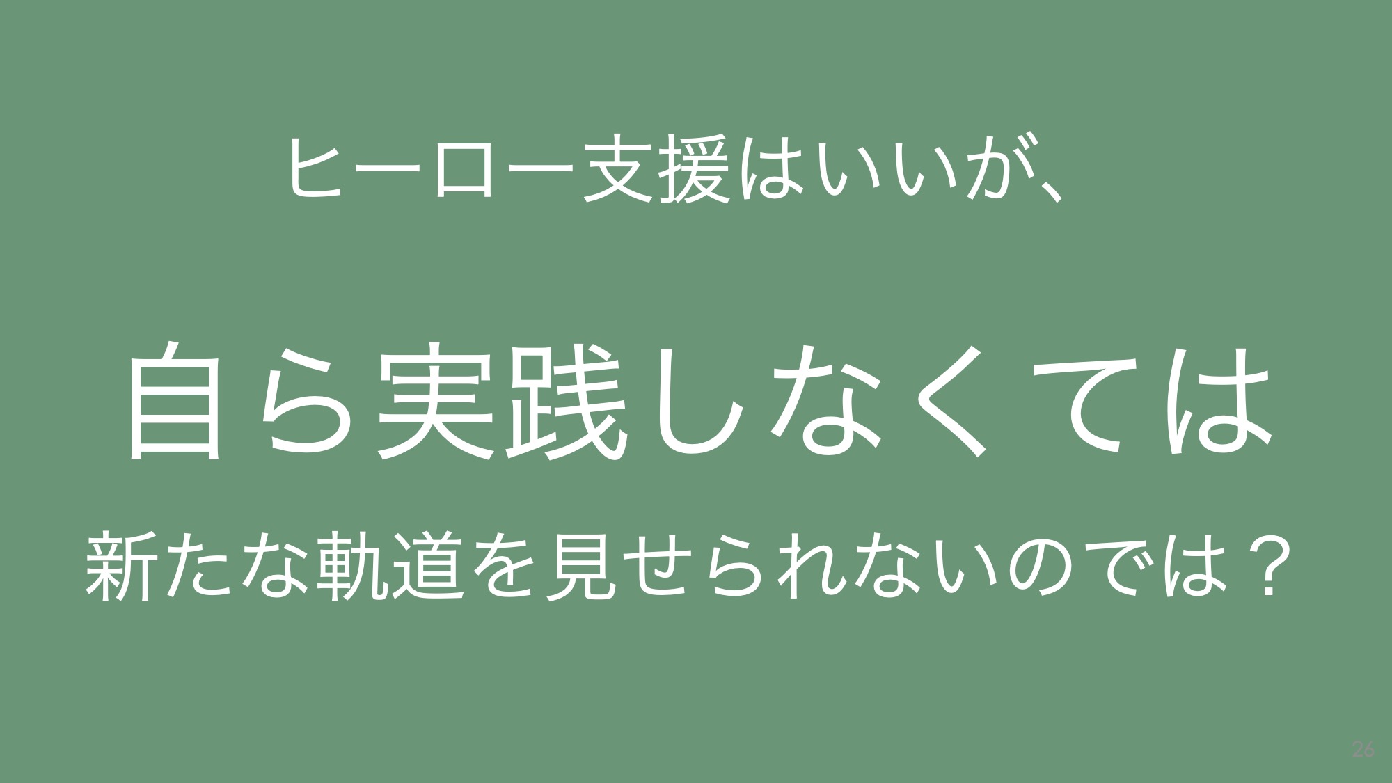 「インパクトヒーロー支援はいいが、自ら実践しなくては、新たな軌道を見せられないのでは?」――はい、まさにそのとおりです。