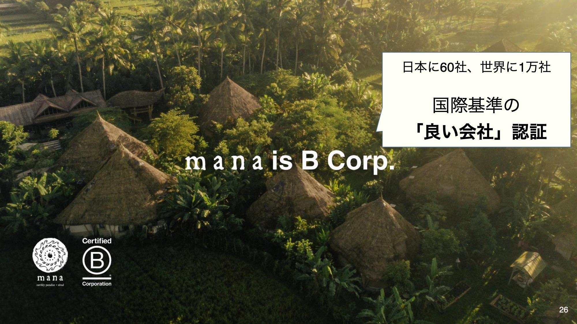 おかげさまで、パンデミックを生き延び、現在では、研修施設として稼働しており、3年前にホテルとして、B-Corp認証(※) を獲得しました。