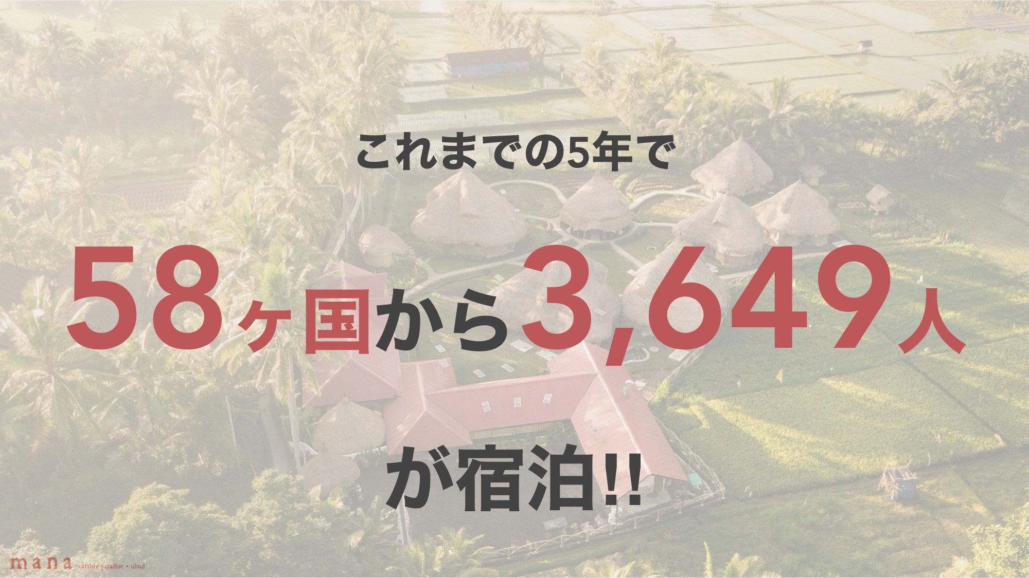 過去5年間で、58カ国、約3,700人が宿泊、10万人近くのお客様が、レストランを訪れてくださっています。