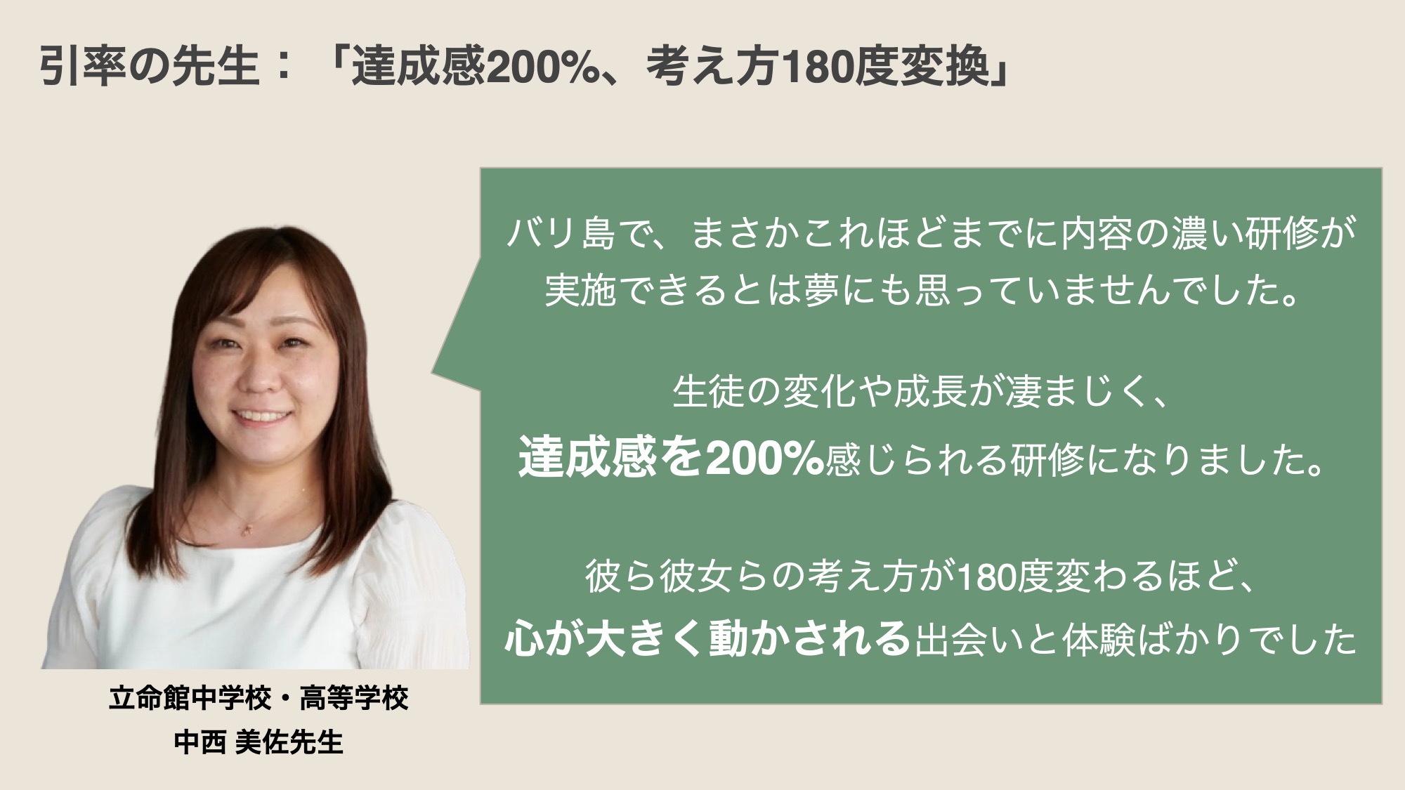 たとえば、立命館高等学校の場合、引率した中西 美佐先生は、「まさか、これほどまでに凄まじい研修とは」と驚かれ、生徒たちは5年連続、バリ島に渡航しています。