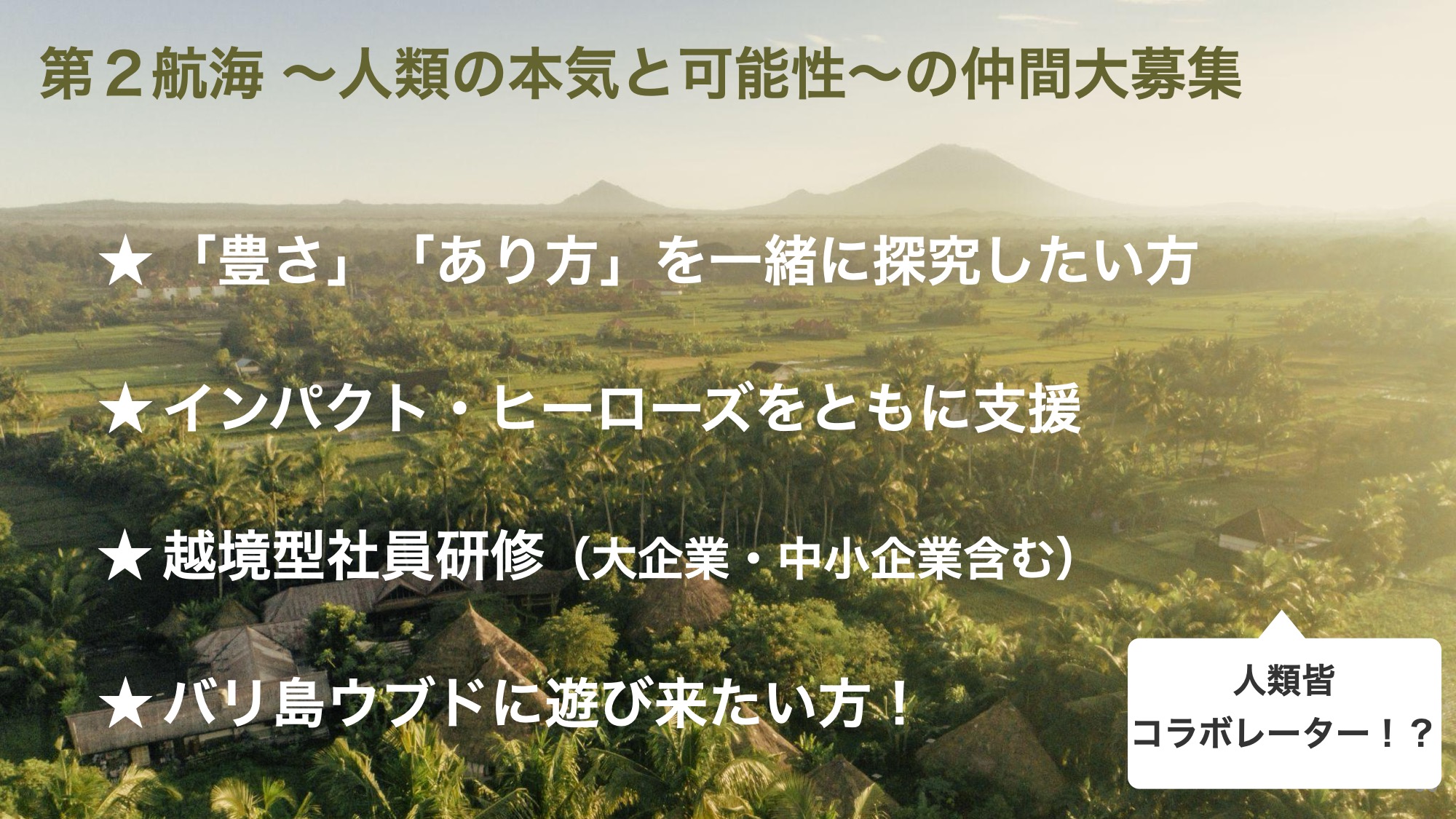 これほどまでに大きな志ですので、人類みなコラボレーターという思いです。