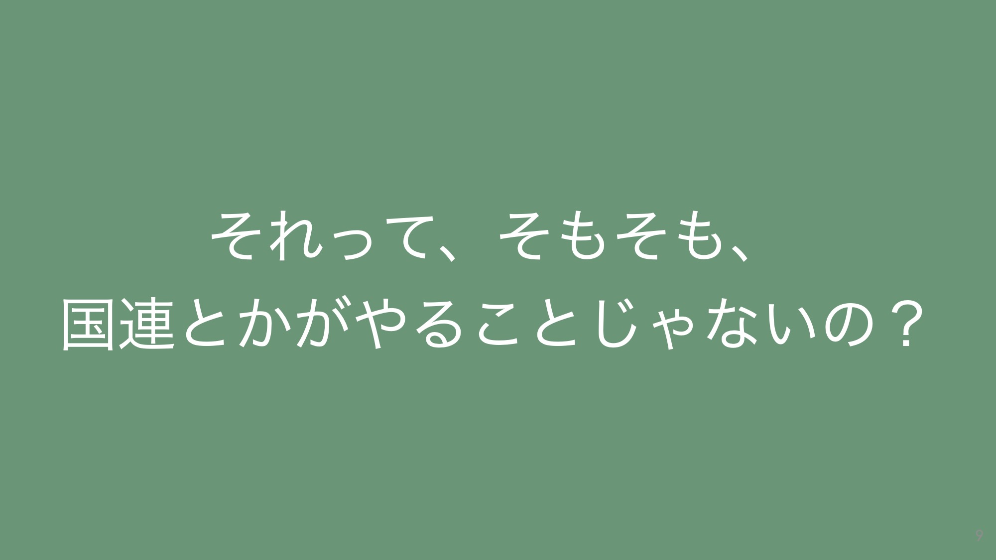 「それは国連とかが取り組むことじゃないの?」と笑う方もいらっしゃるでしょう。
