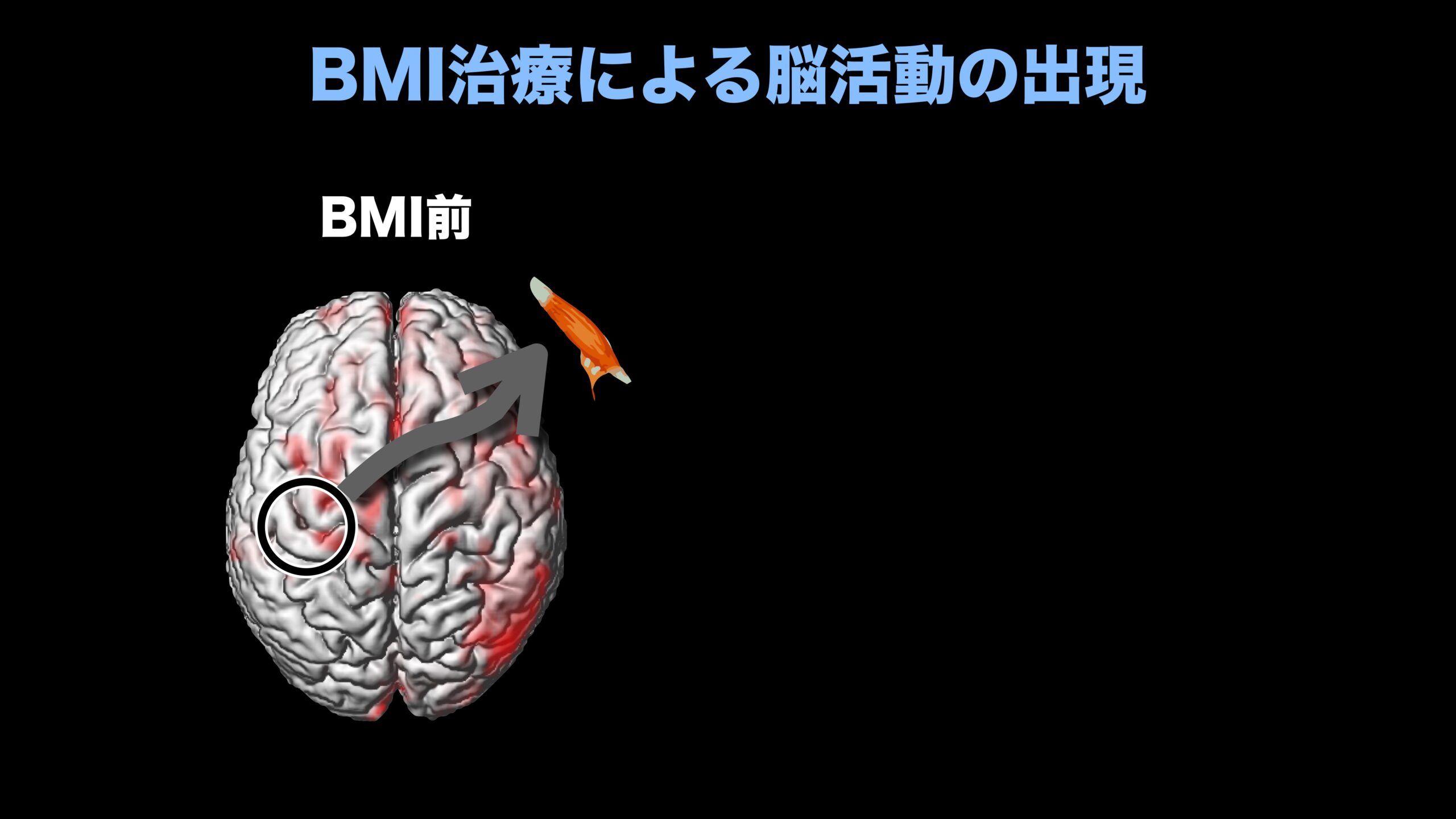 麻痺している右手を動かそうとしても、運動の生成に必要な運動野には活動が見られません。