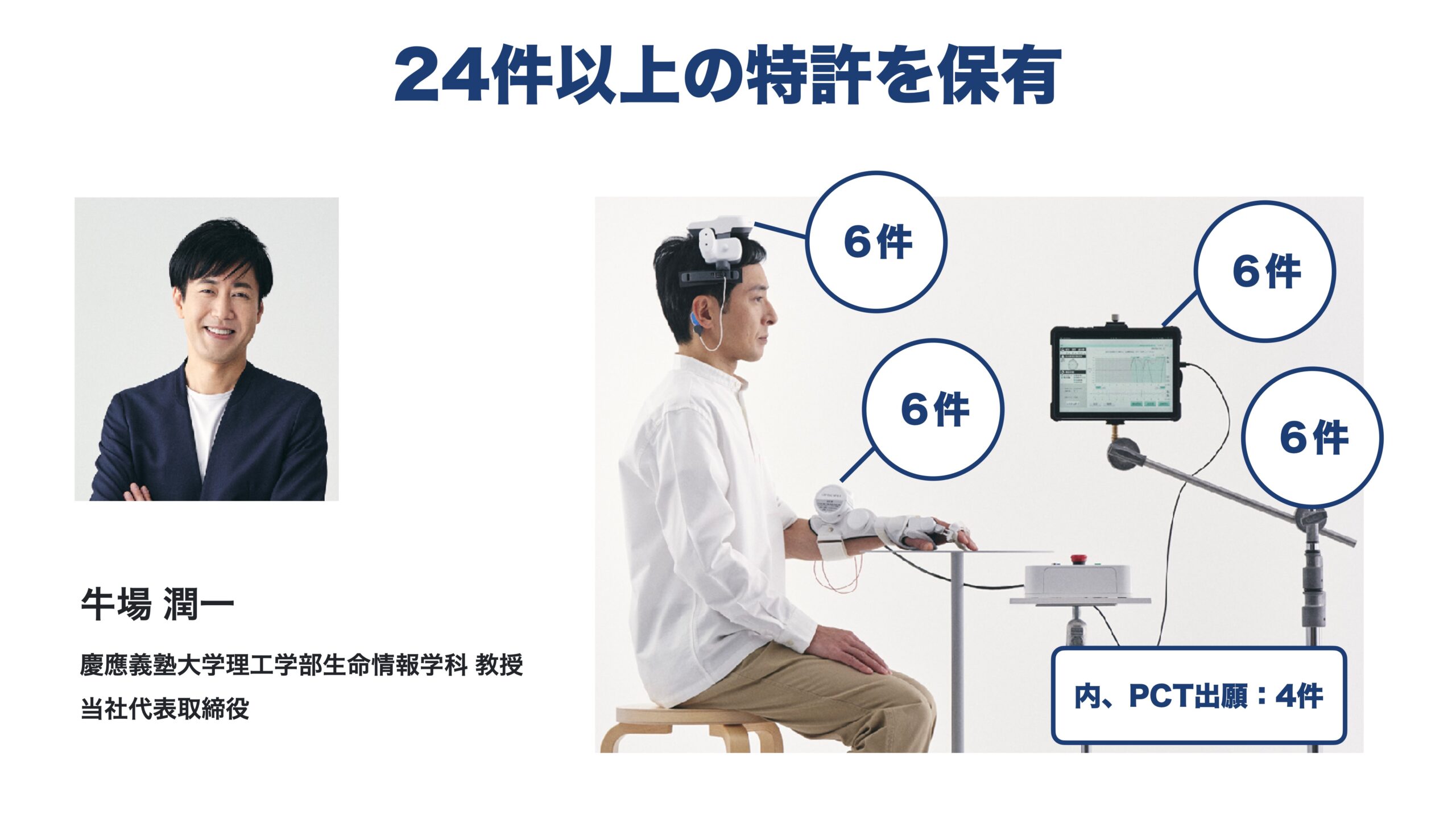 理工学部教授牛場(潤一さん)を中心に、すでに24件以上の特許を保有し、確かな事業基盤を築いています。