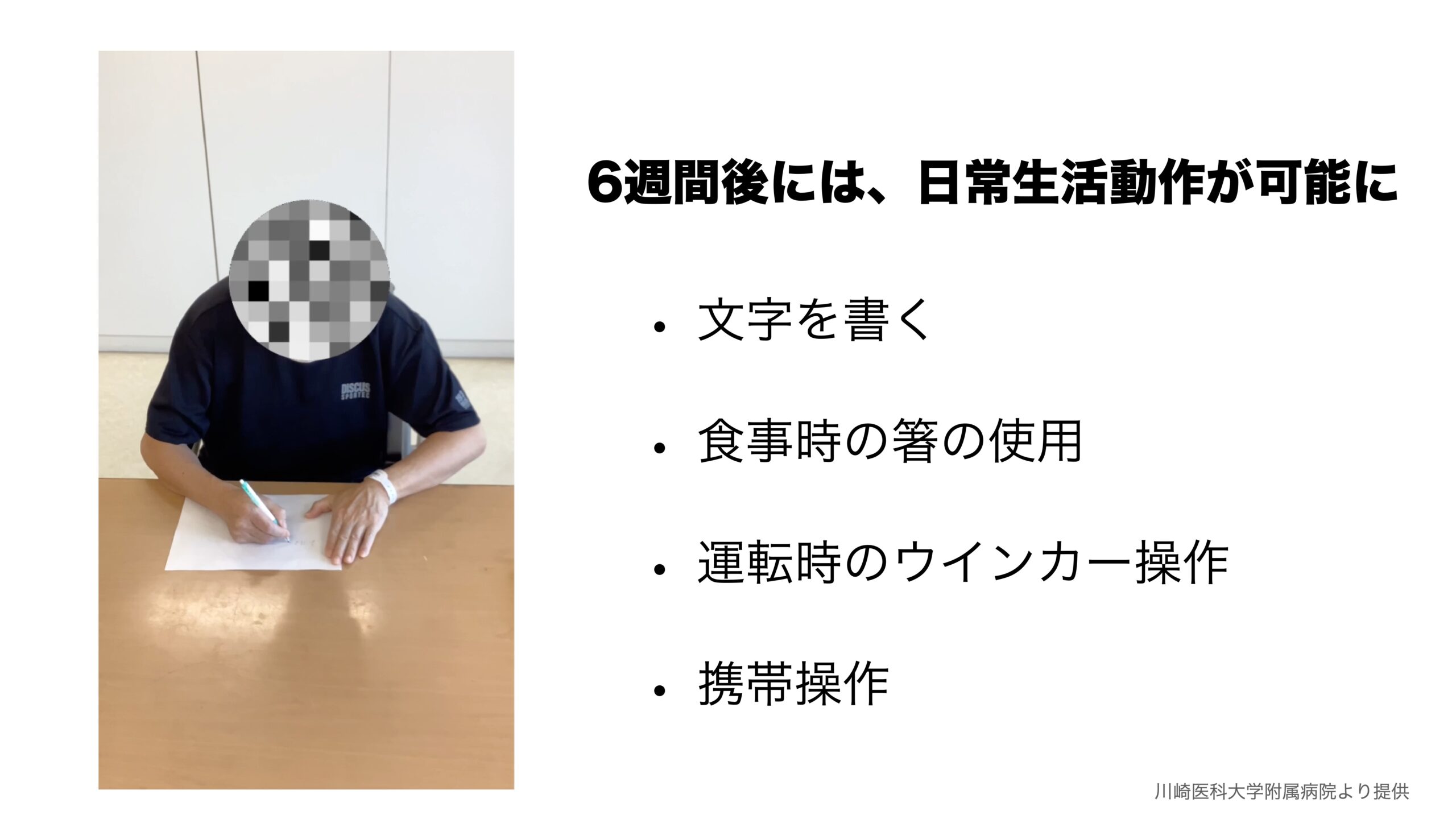 さらに、今では文字を書いたり、食事で箸を使用したりするなど、日常生活動作の改善も見られています。