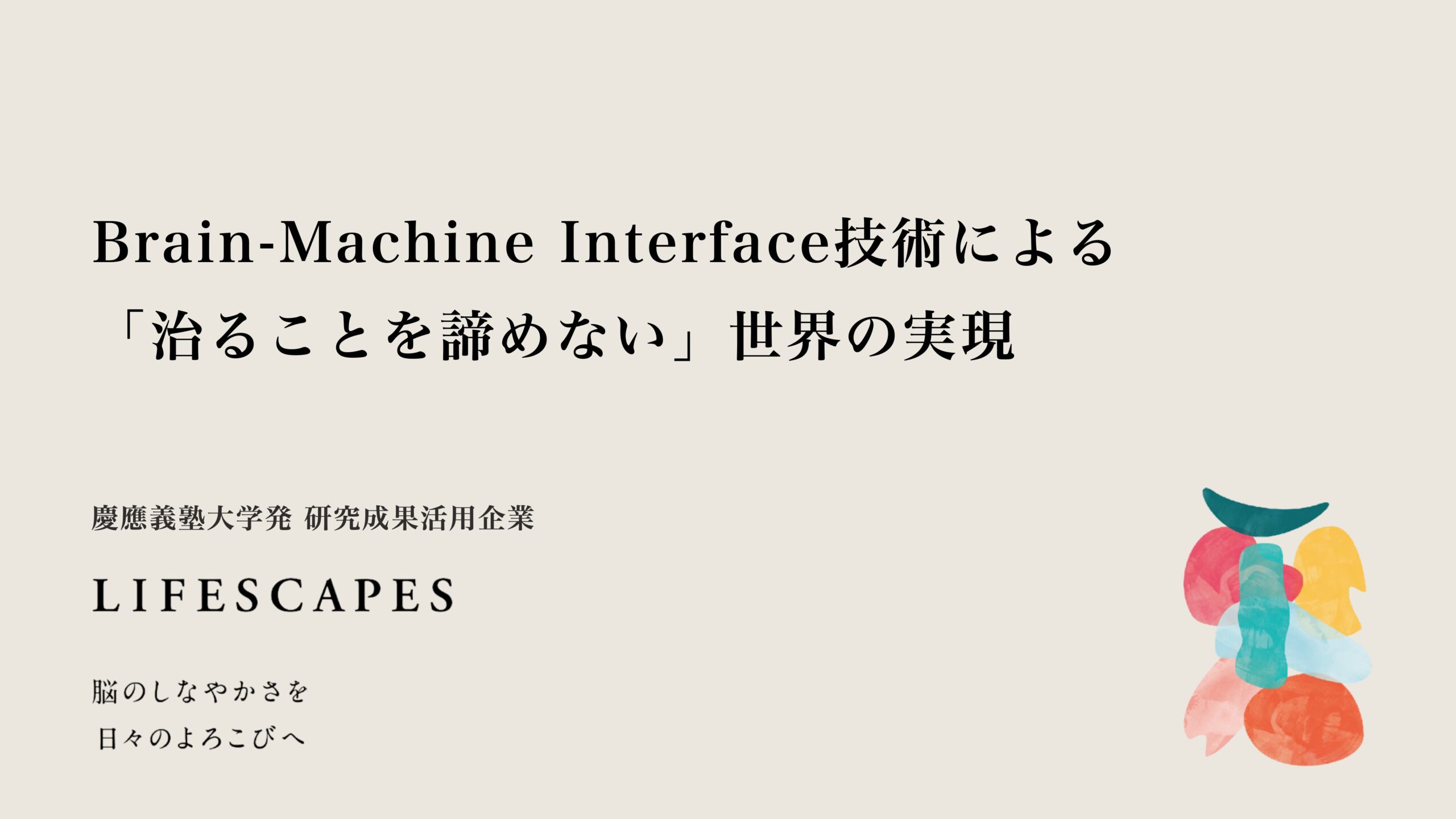 林 正彬さん こんにちは、Brain-Machine Interface技術による「治ることを諦めない」世界の実現を目指すLIFESCAPESです。