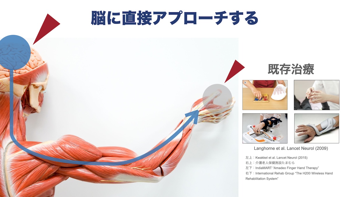 その理由は、既存治療は全て、麻痺した手そのものに対してアプローチしているためです。