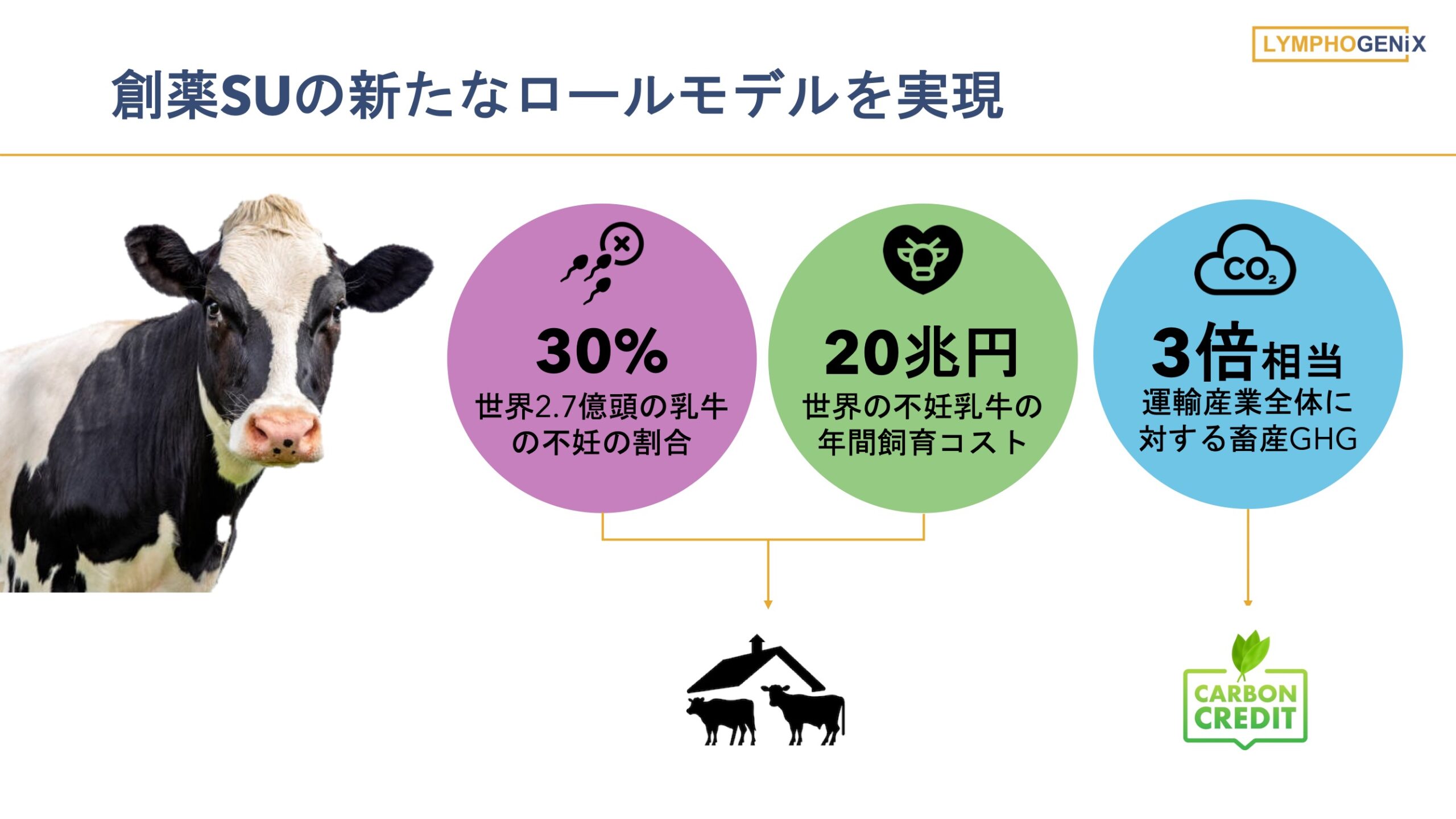 そこで私たちは、まず不妊牛という巨大マーケットに挑み、畜産農家の大きなペインを解消します。