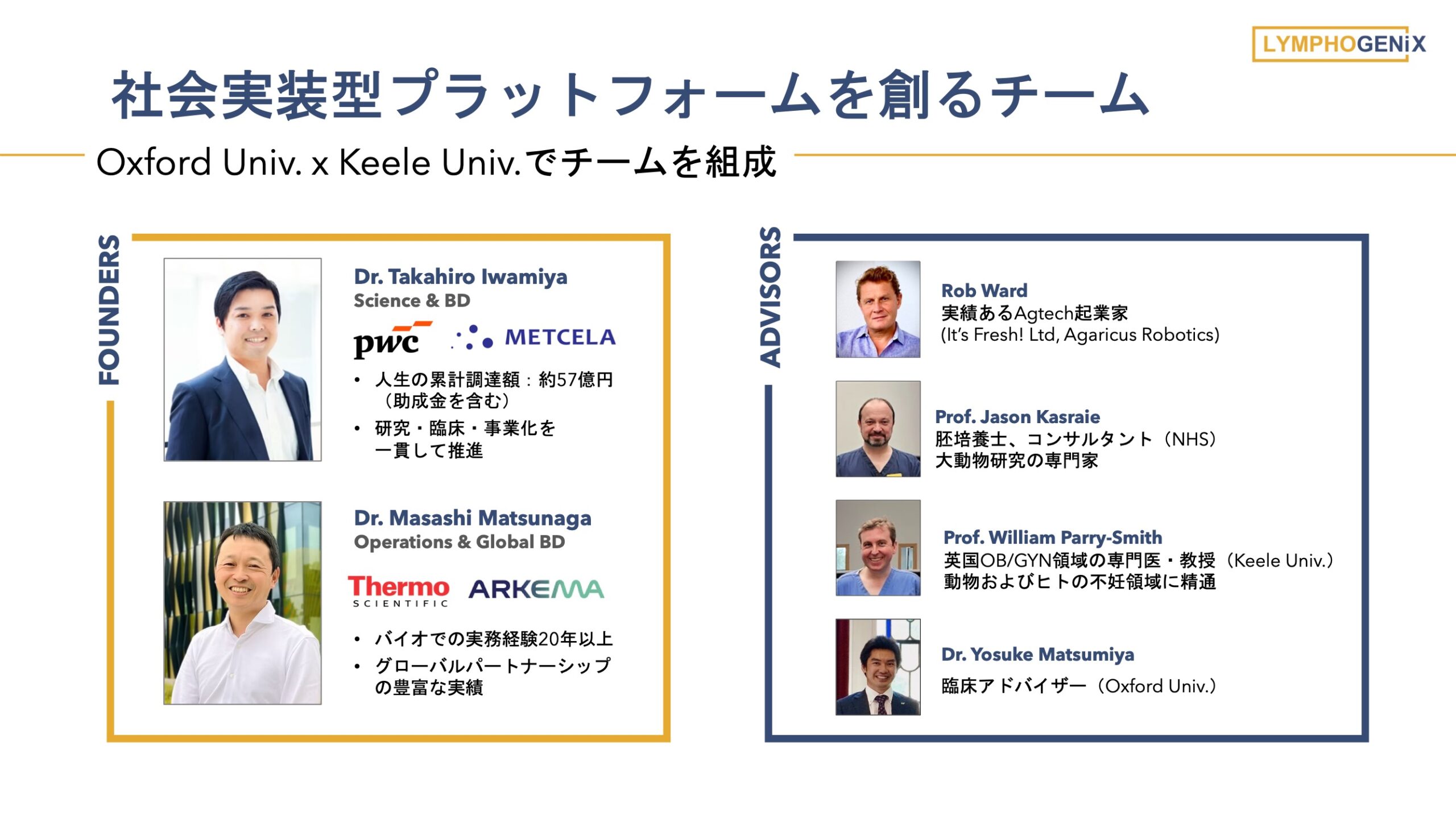 さらに、畜産やヒト不妊領域からイギリスを中心とした世界的な専門家がアドバイザーとして参画しています。