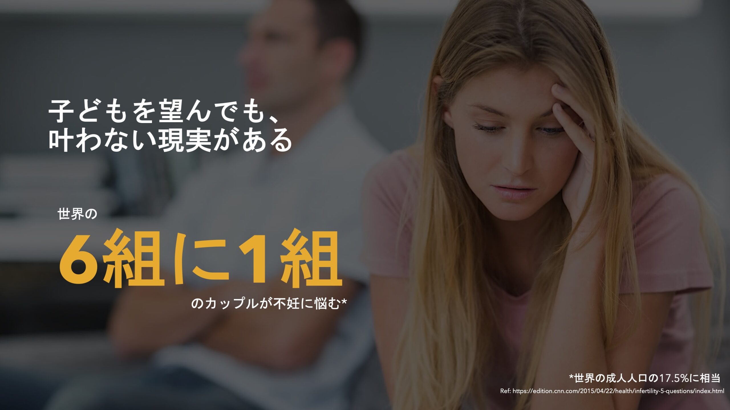 実際に世界では6組に1組のカップル、世界の成人人口の17.5%が不妊に悩んでいます。
