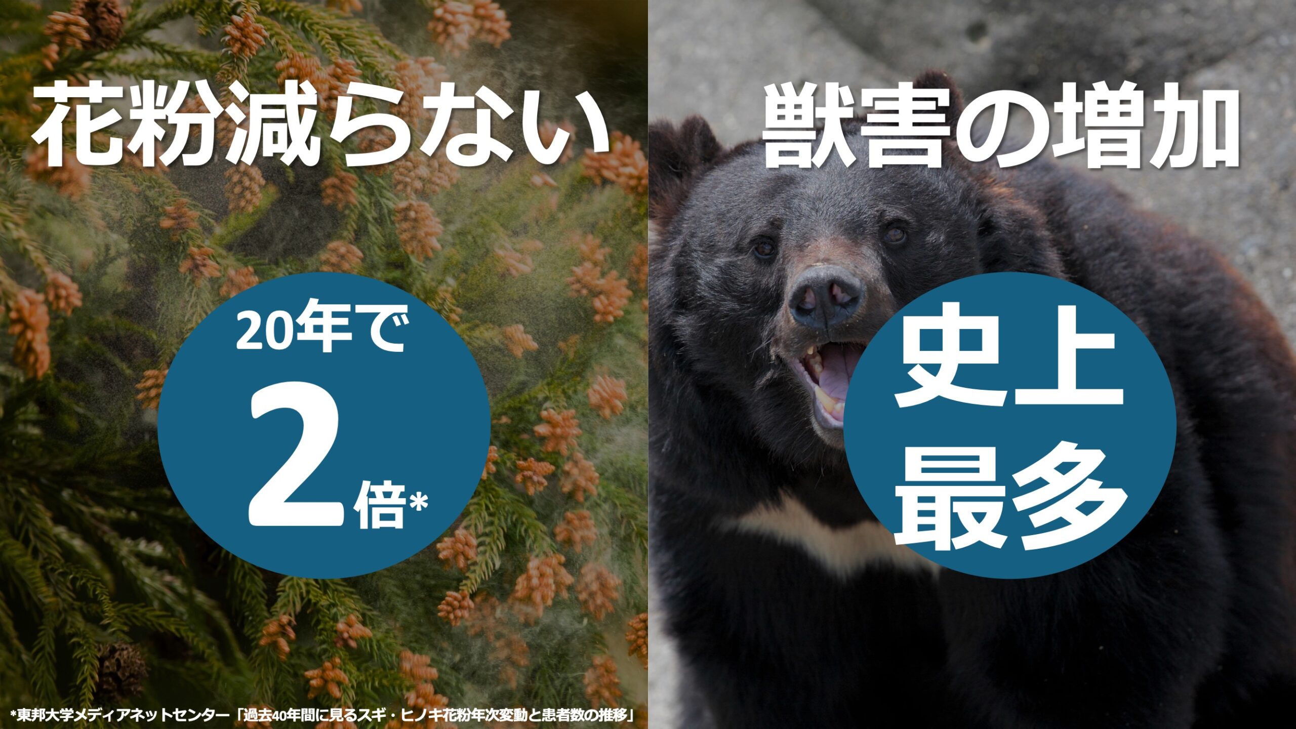 直近20年でスギ花粉は2倍、クマ被害は史上最多に