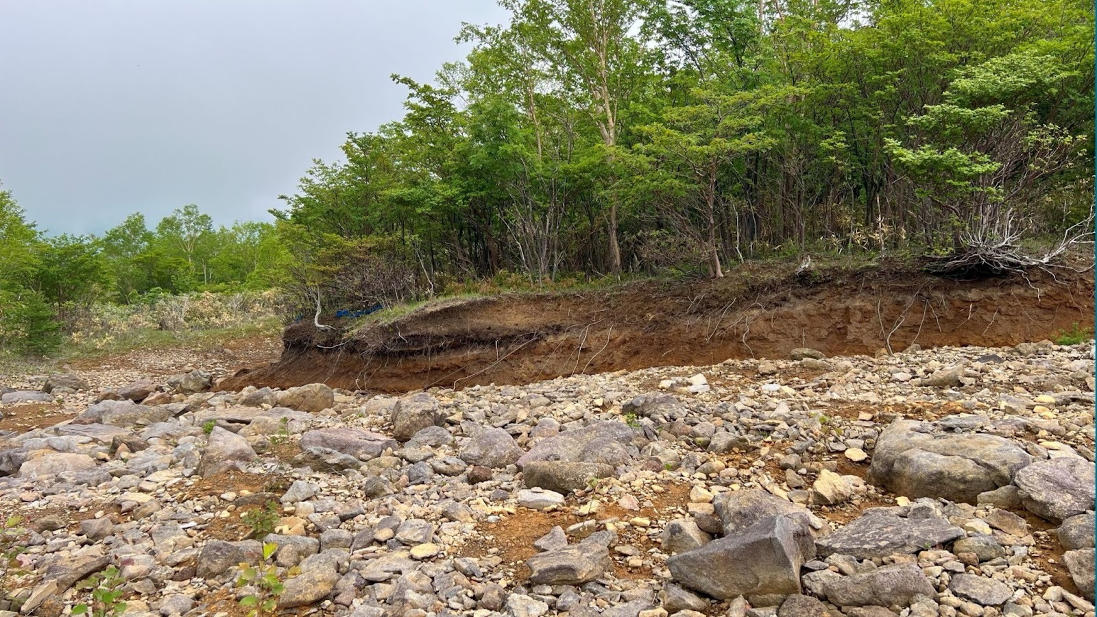 1cmの土がつくられるには、100年かかると言われているにもかかわらず、こちらは、わずか20年で、1.5mもの土が流れていました。
