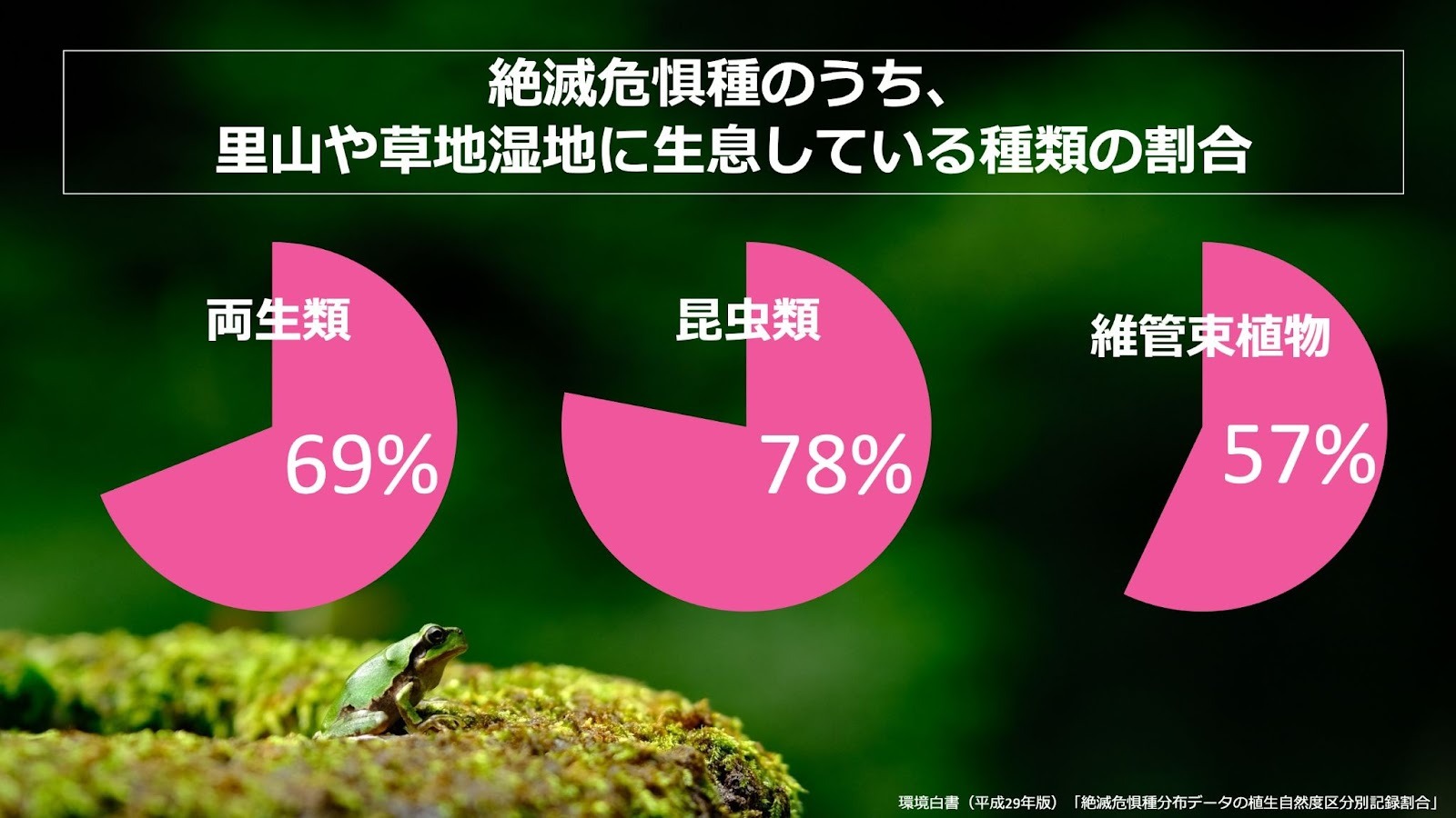 それらが意味しているのは、里山のような自然がなくなることによって、生物が絶滅し、ひいては、農作物や人間の生存が脅かされているということです。