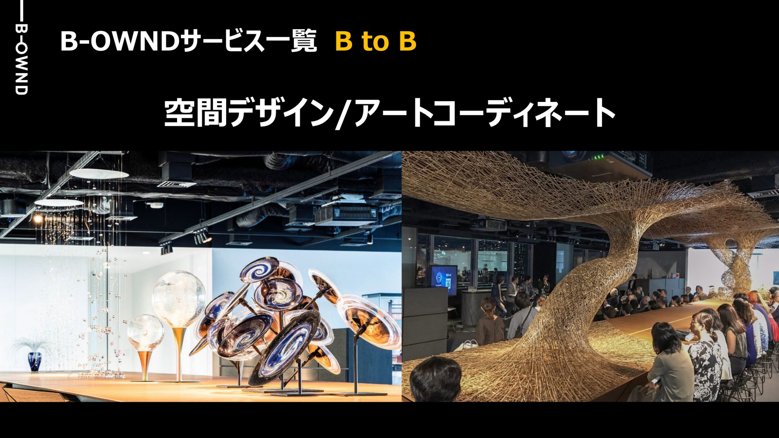 アーティスト向けのマネジメント事業からB to CのアートギャラリーやECサイト、B to Bでは空間デザインやIPコラボをプロデュースする事業も行っています。