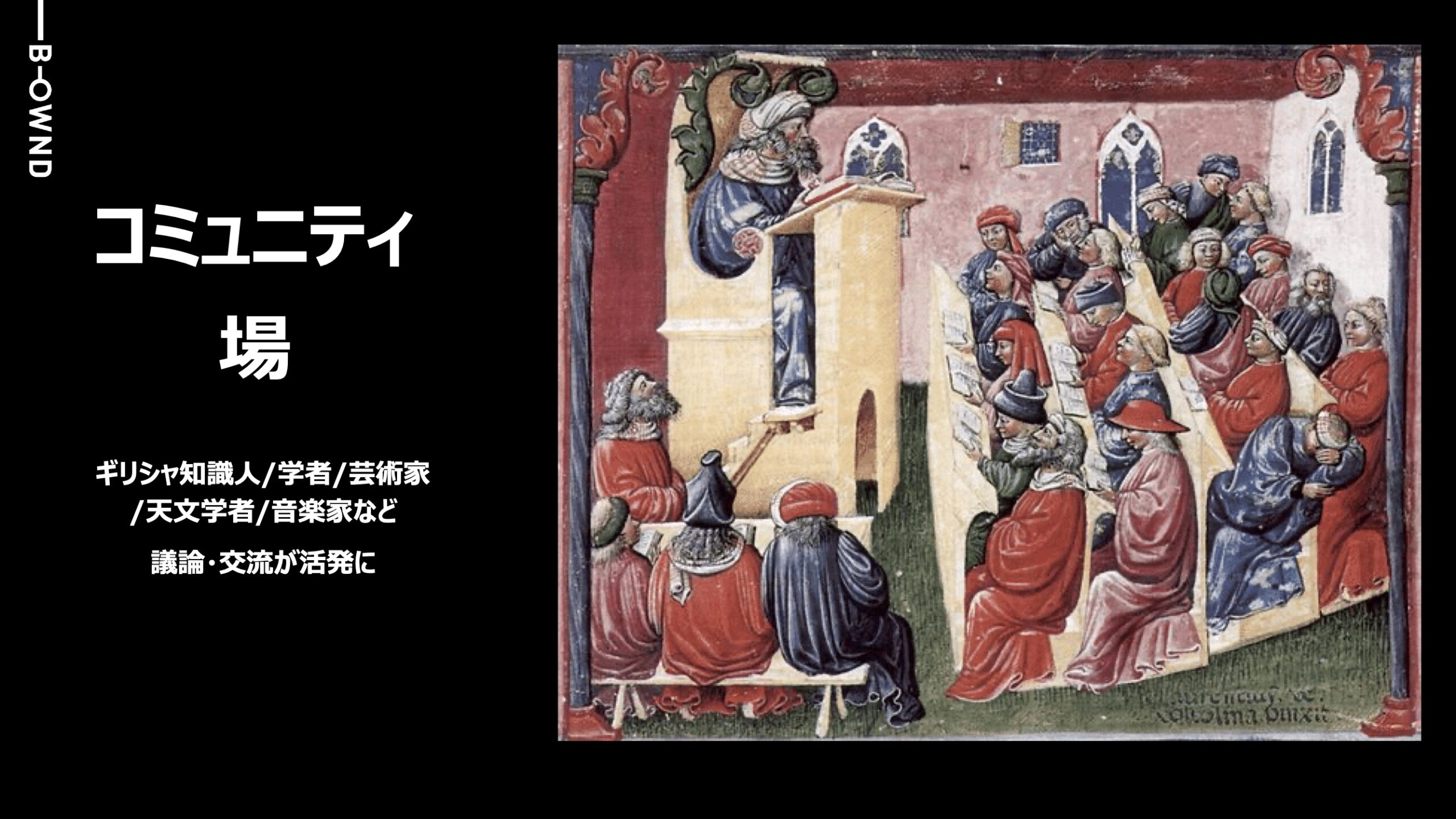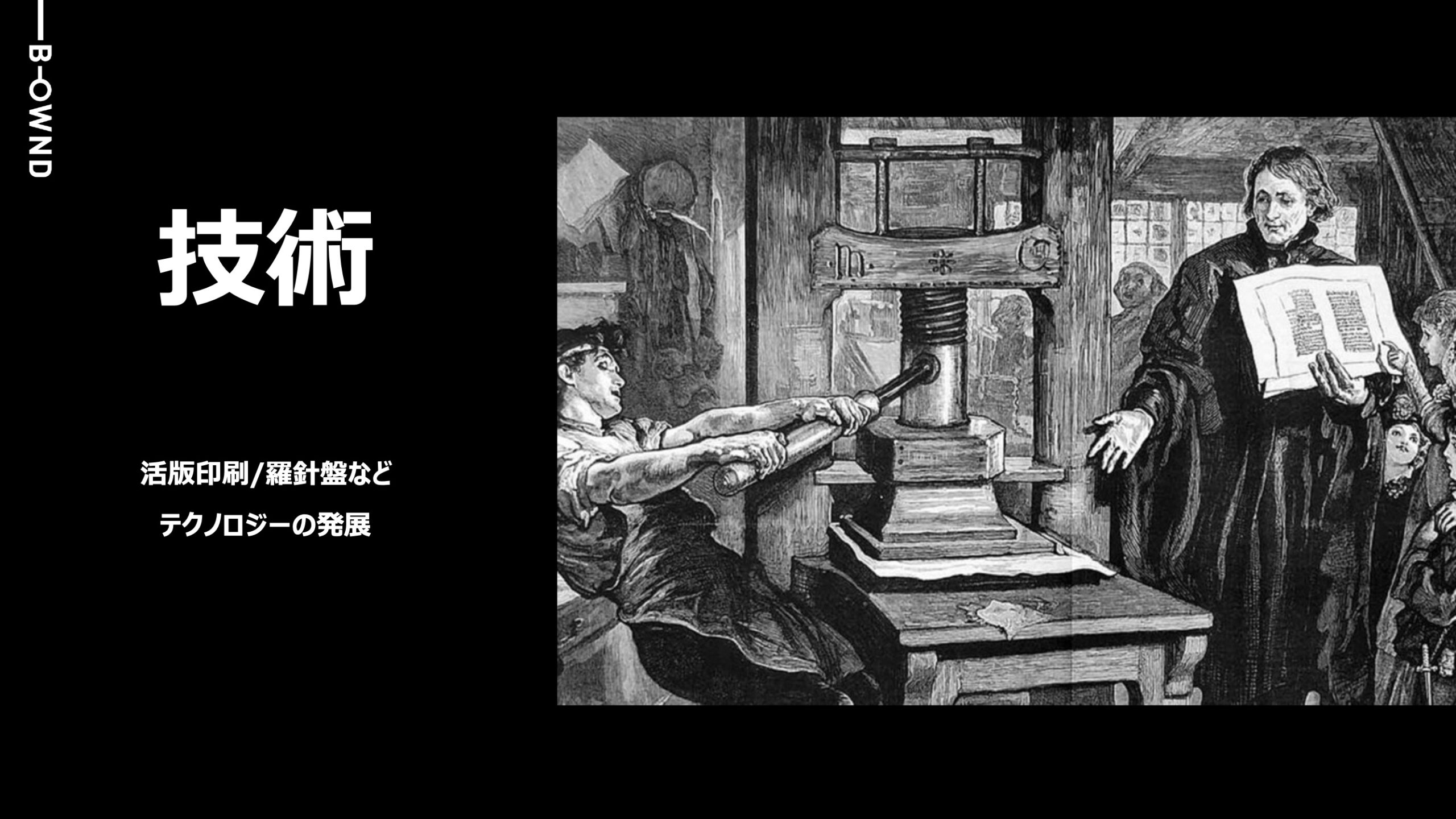 500年前、西洋でなぜルネサンスが起きたのか歴史を遡ると、まずヨーロッパで新たな哲学が誕生し、その思想を活版印刷などのテクノロジーが拡散し、コミュニティで議論が加速し、最後に大資本が後押ししました。