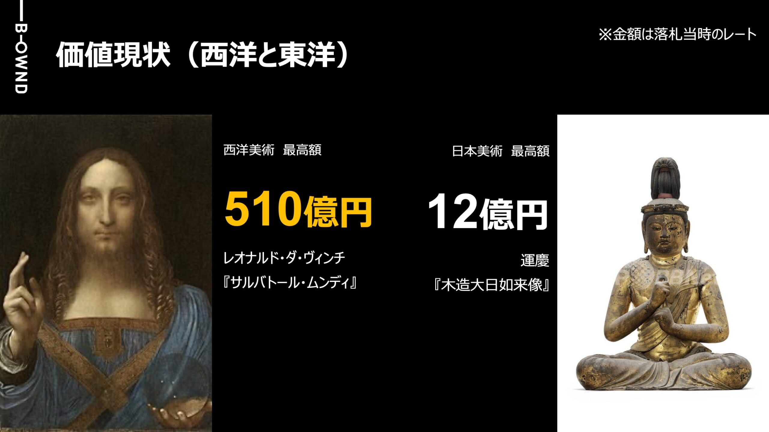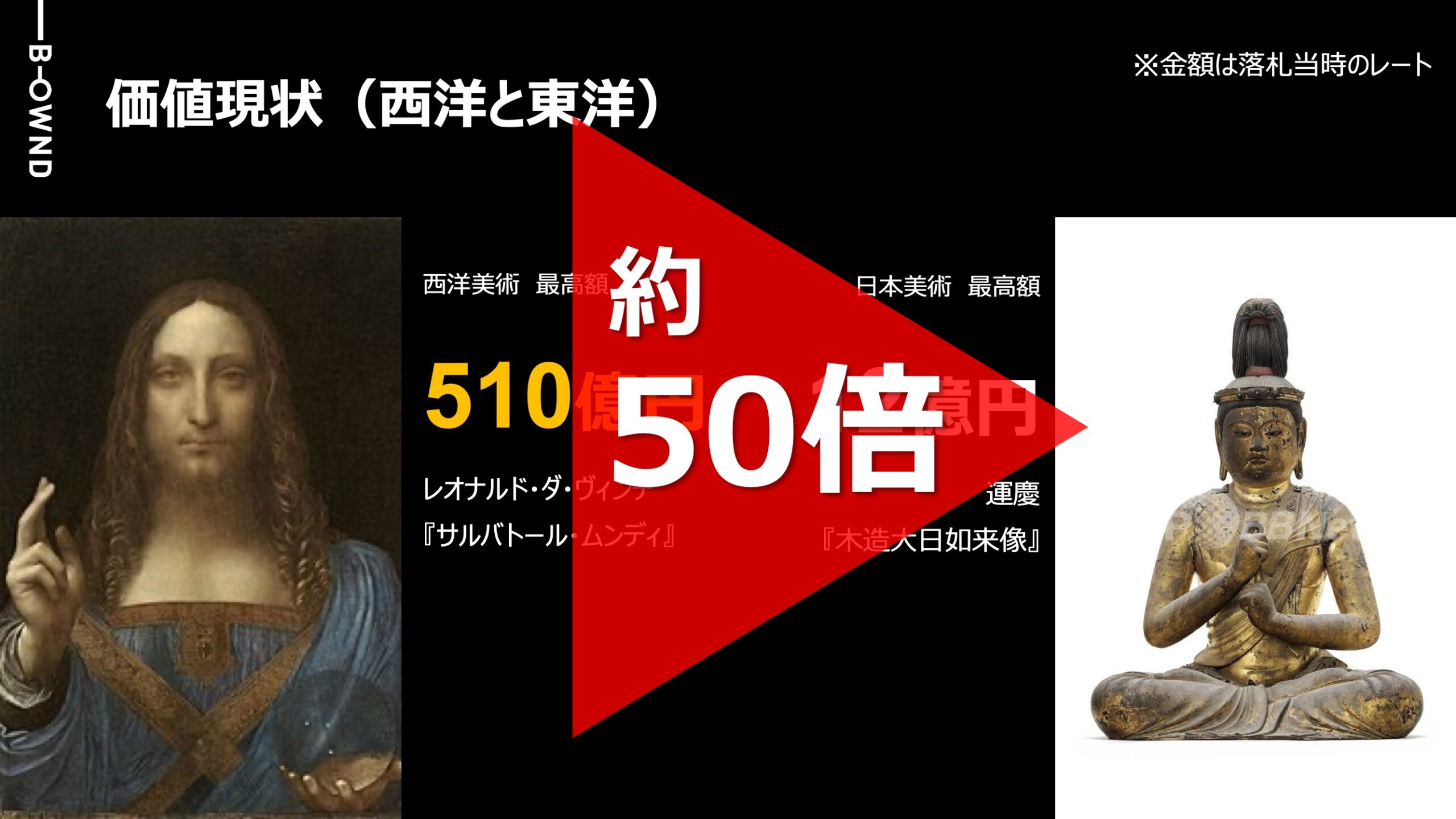 一方、 中世の日本における作品の最高額は、運慶で12億円。