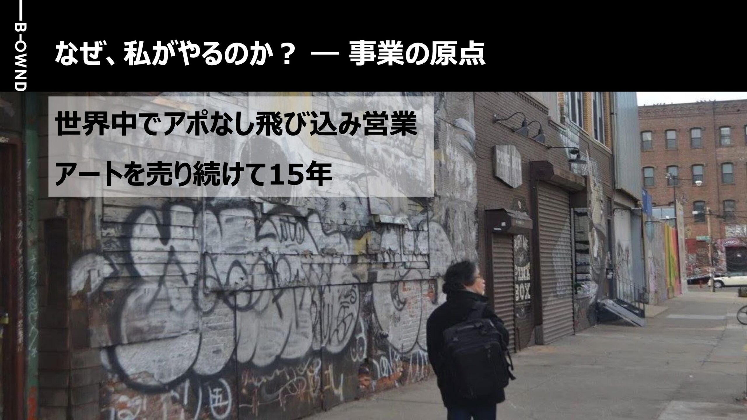 イタリアやアメリカのニューヨーク、香港など世界中のギャラリーに飛び込み営業をし、机上ではなく生活のためにアートを売る仕事をしていました。