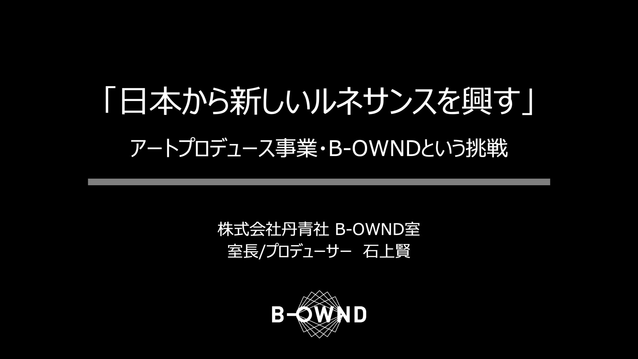 石上 賢さん 「日本から新しいルネサンスを興す」、丹青社 B-OWNDの石上の発表を始めます。
