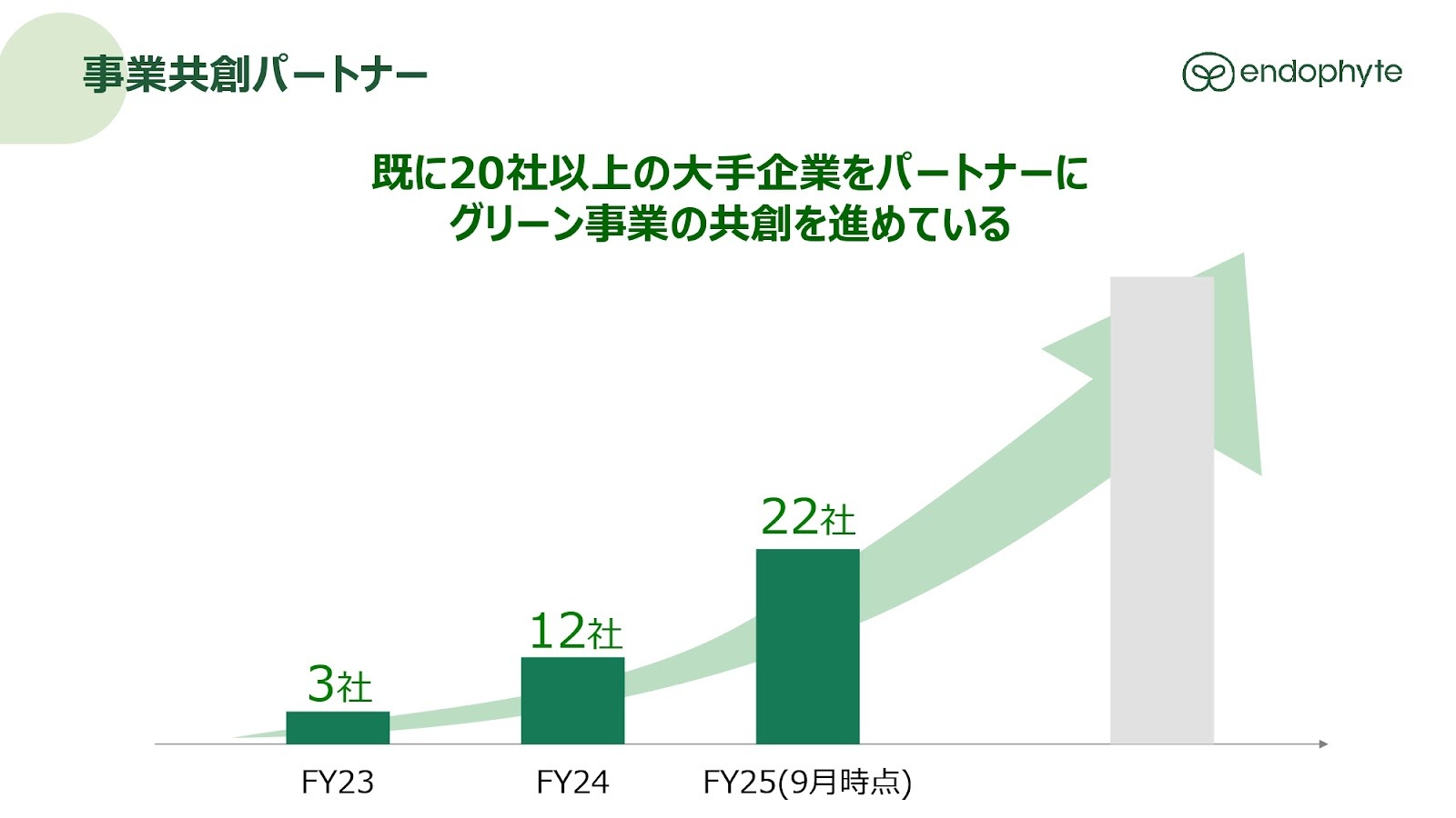 各企業との取り組みの中で事業化、社会実装化が済み次第、弊社の生産パートナーから微生物資材を継続供給していただき、そこから弊社としては物販とライセンスアウトという形で、さらに追加の収益を得ていくモデルを採用しています。