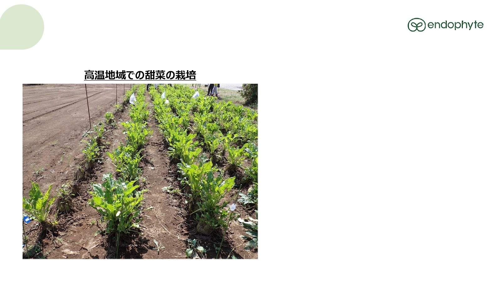 通常涼しい地域でしか育てることができない甜菜を、高温地域で栽培した際の写真です。