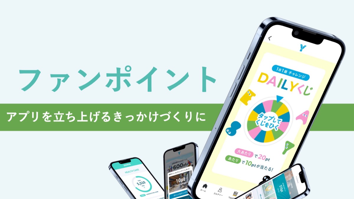 アプリを立ち上げるきっかけとして、ゲーミフィケーション要素を盛り込んだファンポイント、さらには、健康経営の時代にフィットしたヘルスケアポイント。