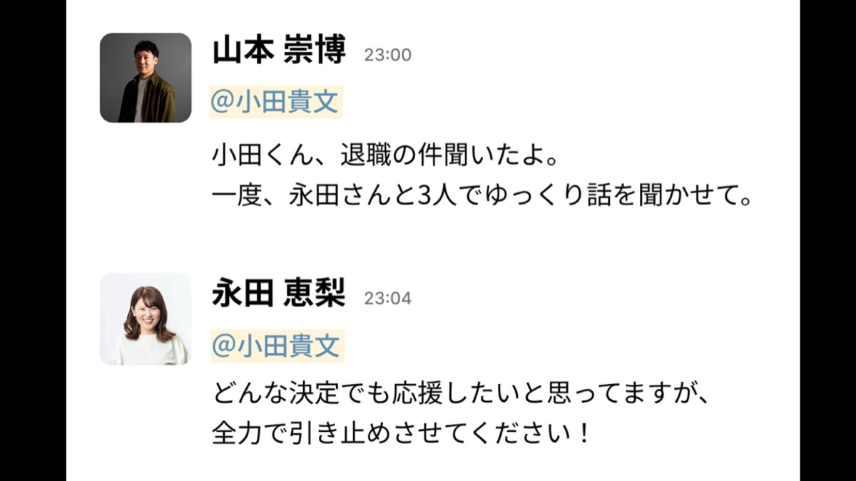 これが、取締役と当時の部長とのSlackでのやり取りです。