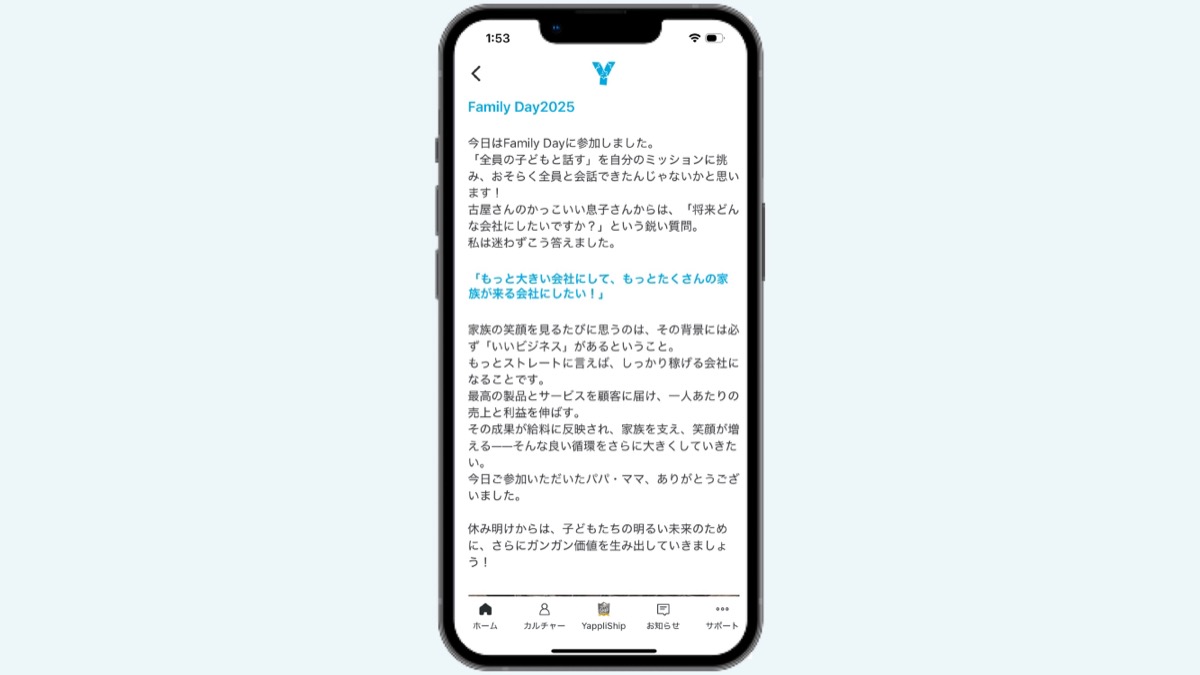 社内でYappli Family Dayというイベントを実施したのですが、配信された社長コラムの内容が印象的で、代表の想いが伝わってきました。