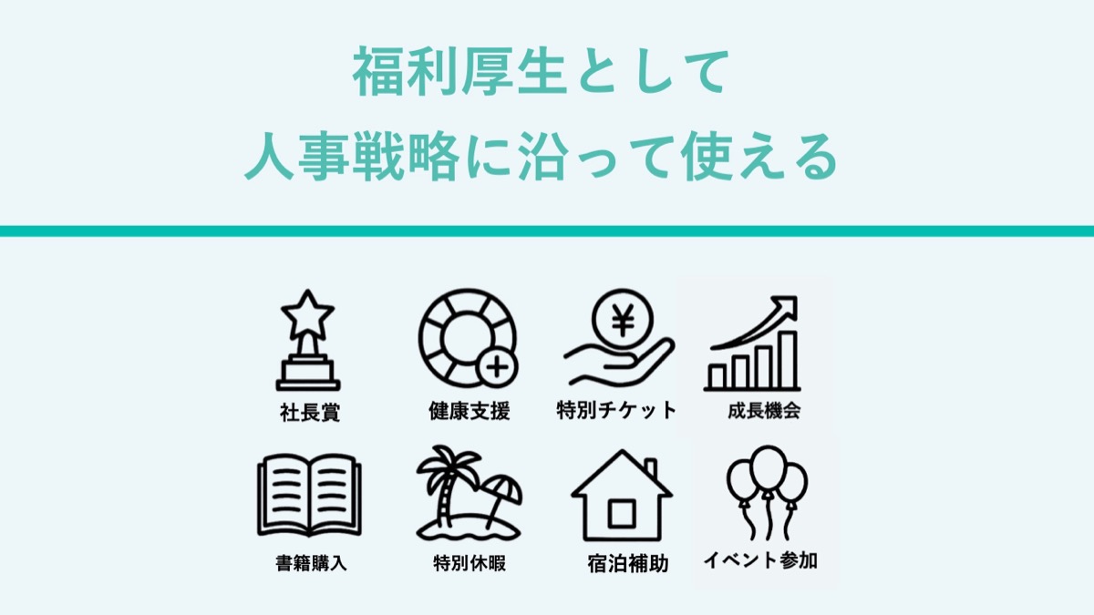 貯めたポイントは、人事戦略に沿った福利厚生に使うことができるのです。