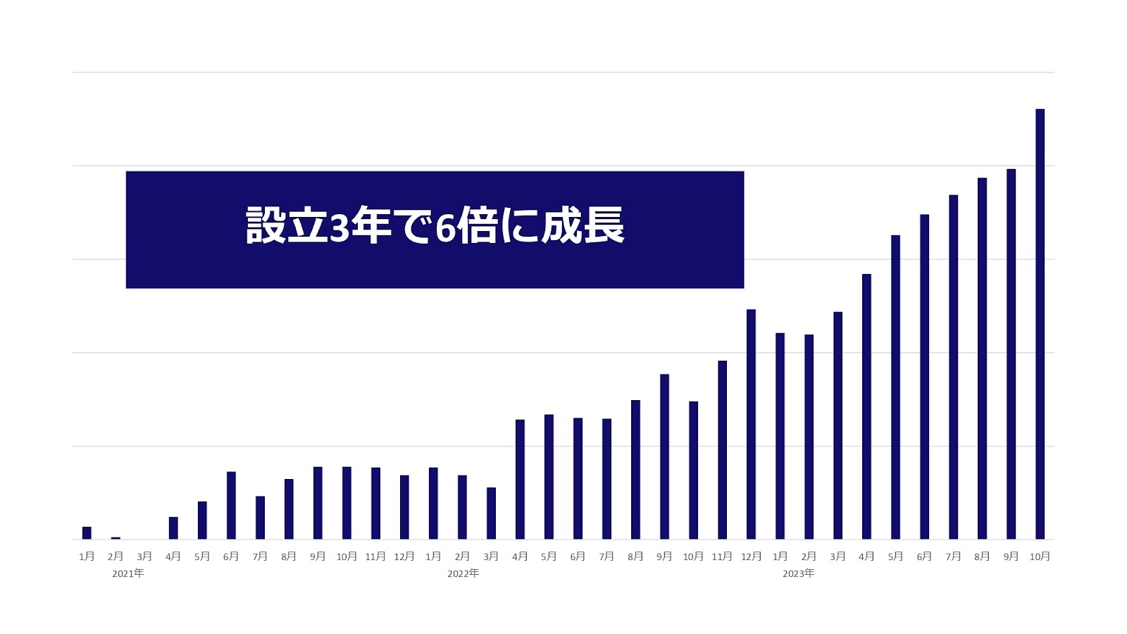 おかげさまで、我々自身も創業から3年で6倍以上に成長させていただいています。