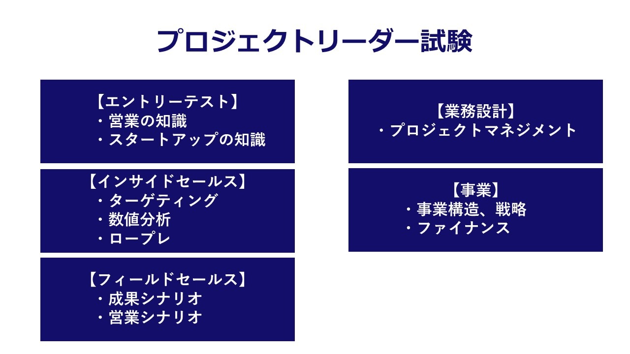 またプロジェクトリーダーを育てるための試験制度があり、インサイドセールス、フィールドセールス、マネジメントができるまで1年で仕上げます。