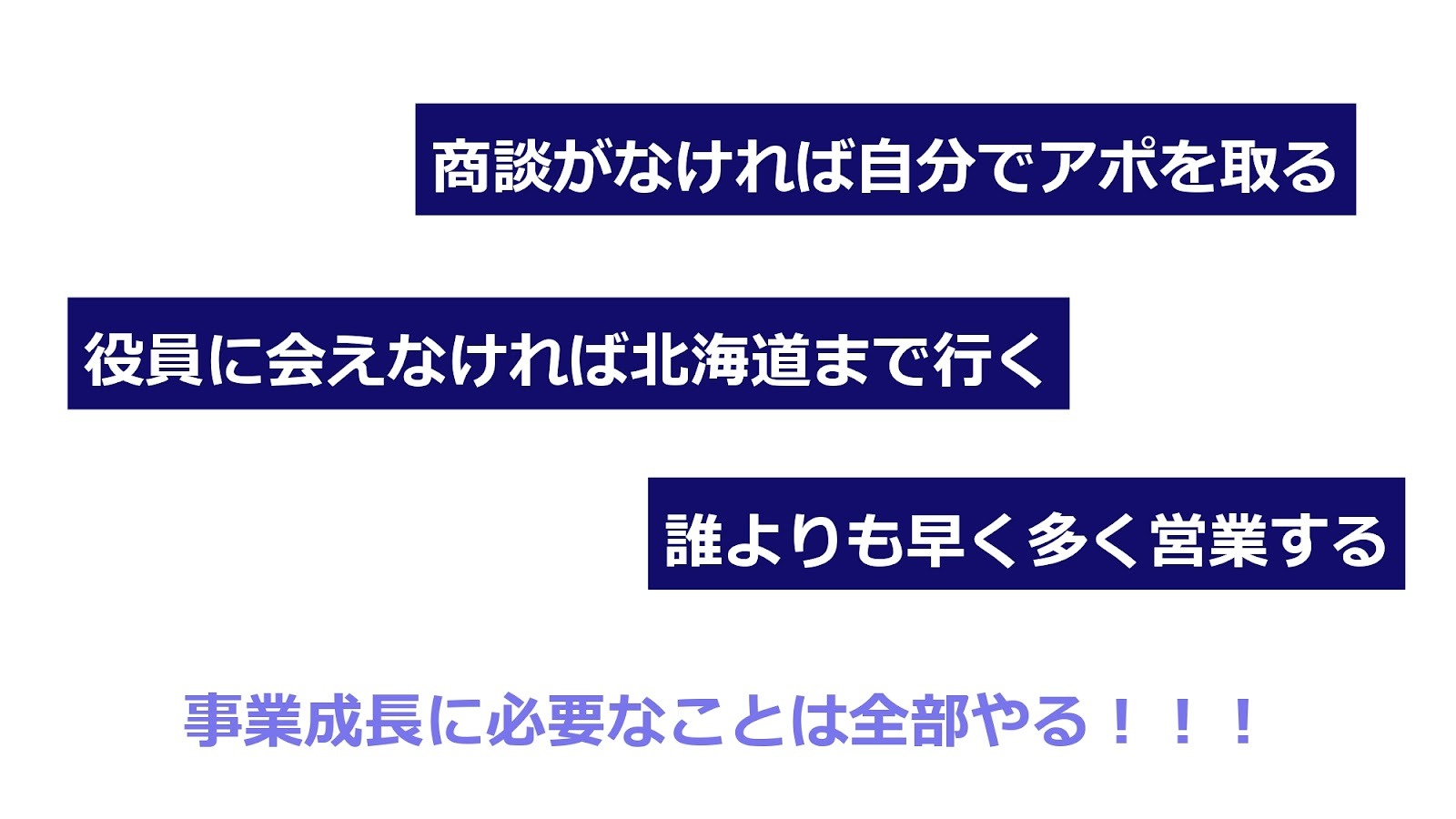 商談がなければ自分たちでアポを取り、役員に会えなければ会いに行く、誰よりも多く活動する、事業成長に必要なことは、全部やってきました。