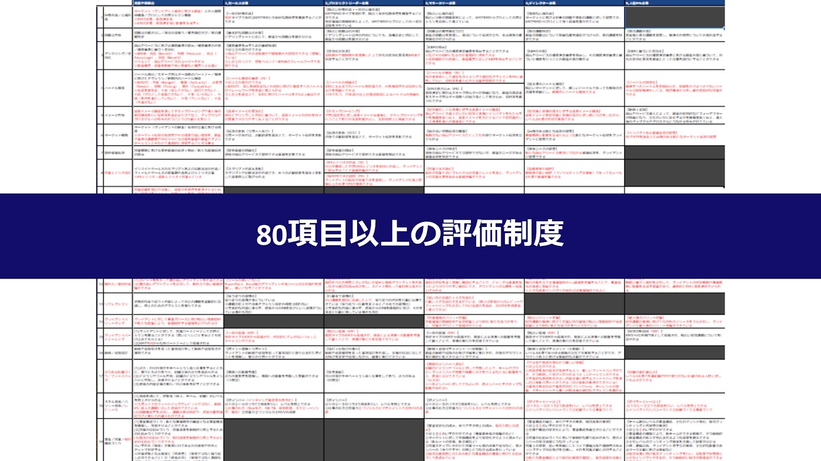 評価は半年に一度、数日かけて80項目以上をチェック。