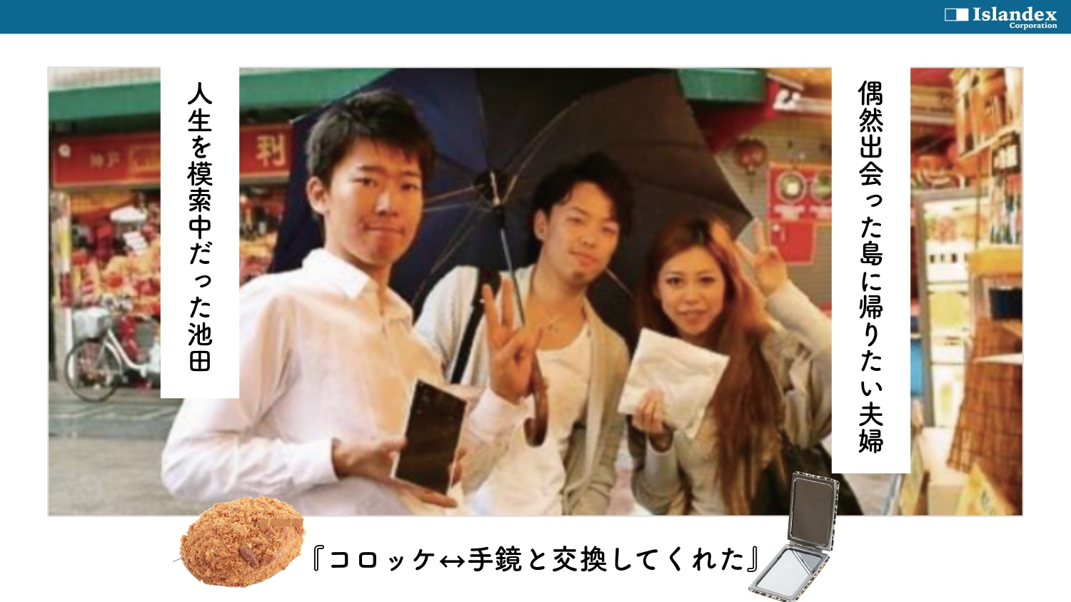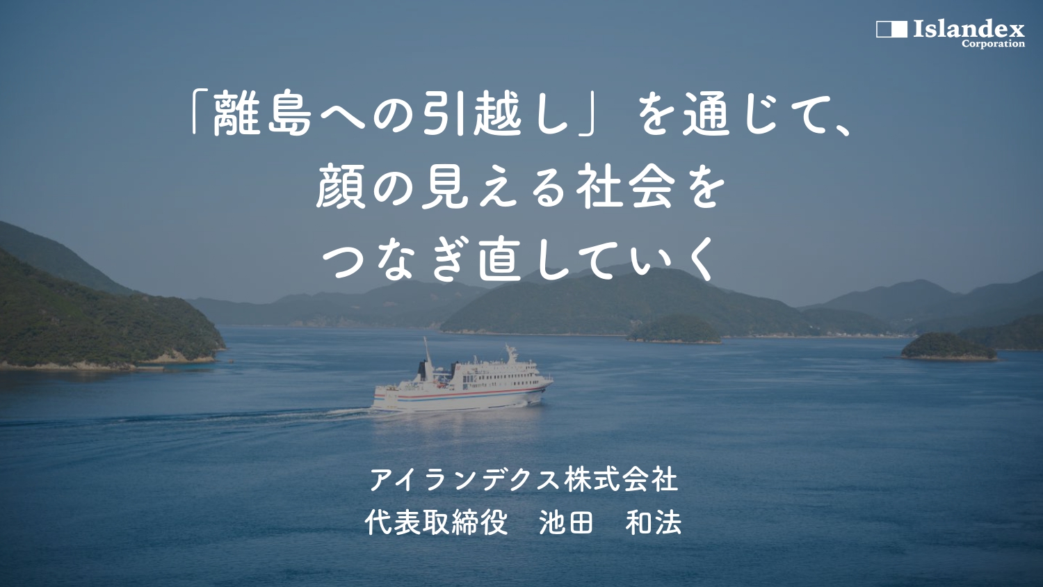 池田 和法さん はじめまして、「離島への引越し」を通じて、顔の見える社会をつなぎ直していく、アイランデクス株式会社の池田です。