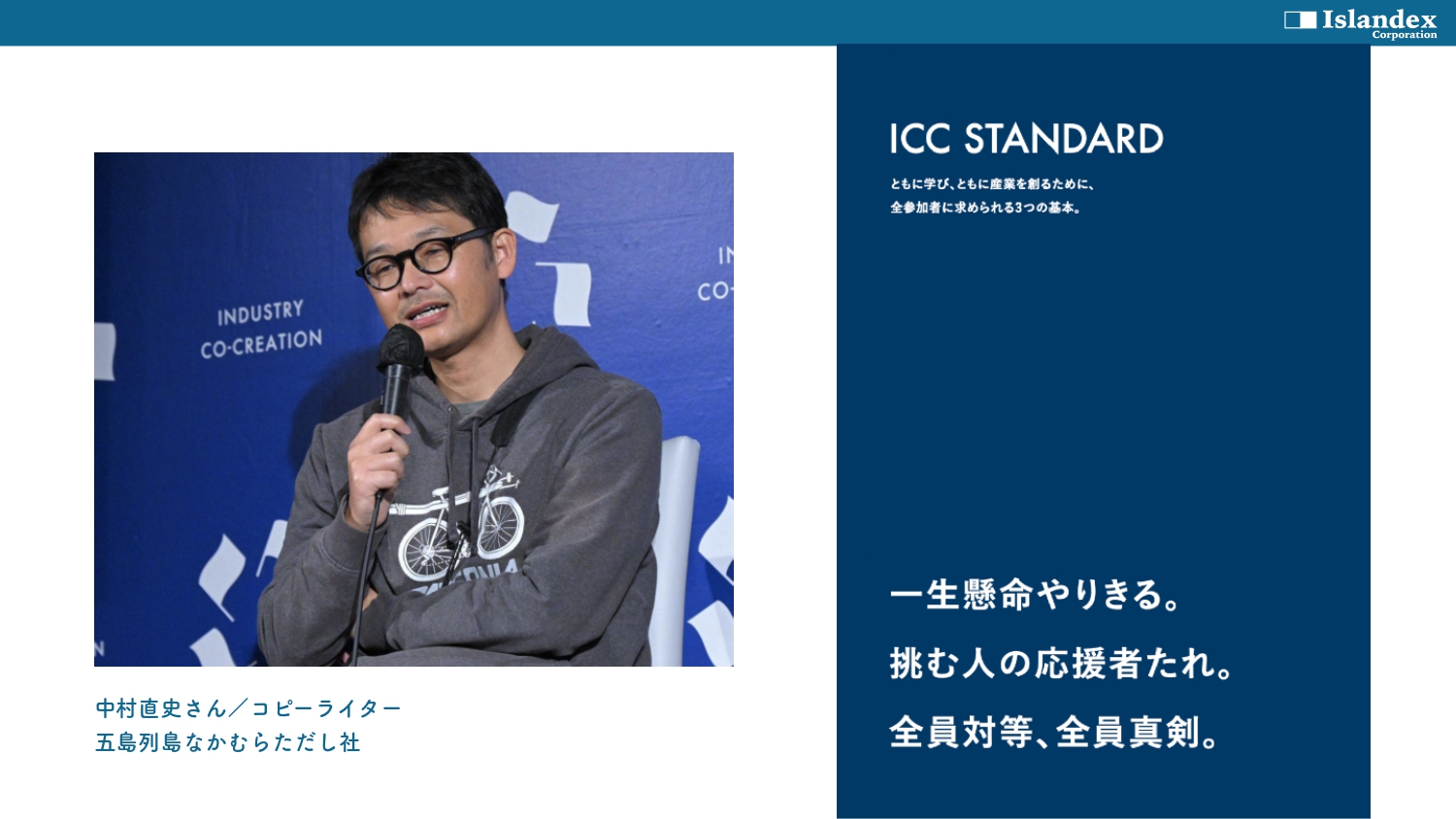 ICCに参加しているコピーライターで、ICCスタンダードのコピーライティングをされた方です。
