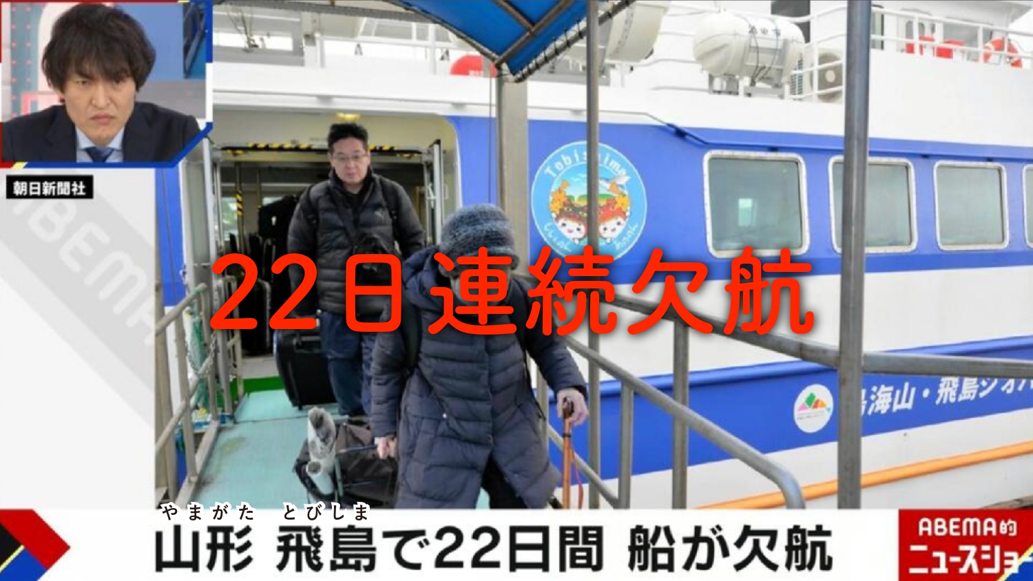 最近、山形県の飛島では、22日連続欠航ということもありました。