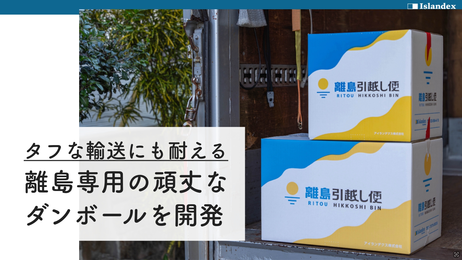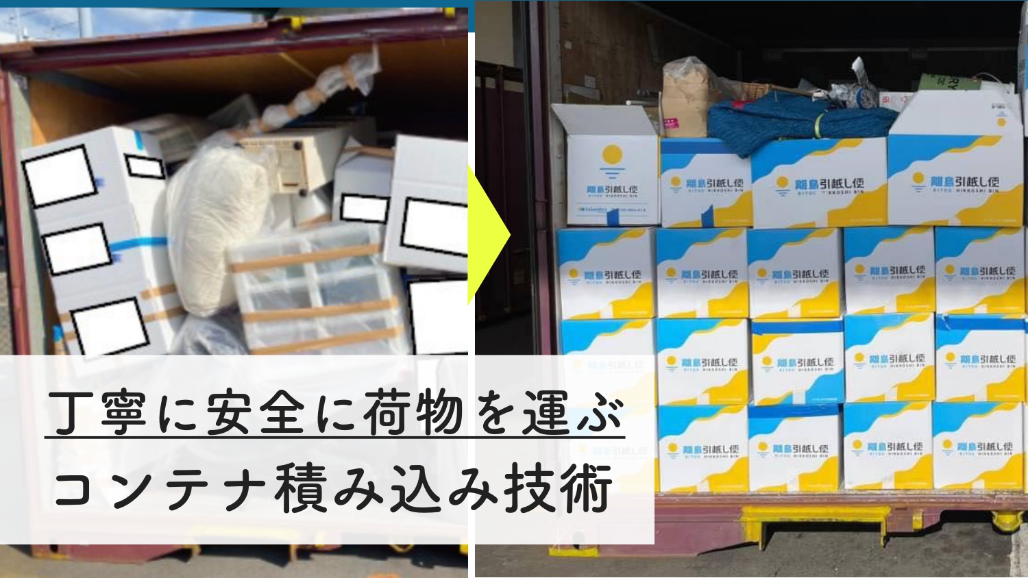 輸送に関わる全ての人がより信頼し合えるための秘訣として、タフな輸送にも耐える離島専用の強化ダンボールや、コンテナ内の独自の積み込み技術を開発しました。
