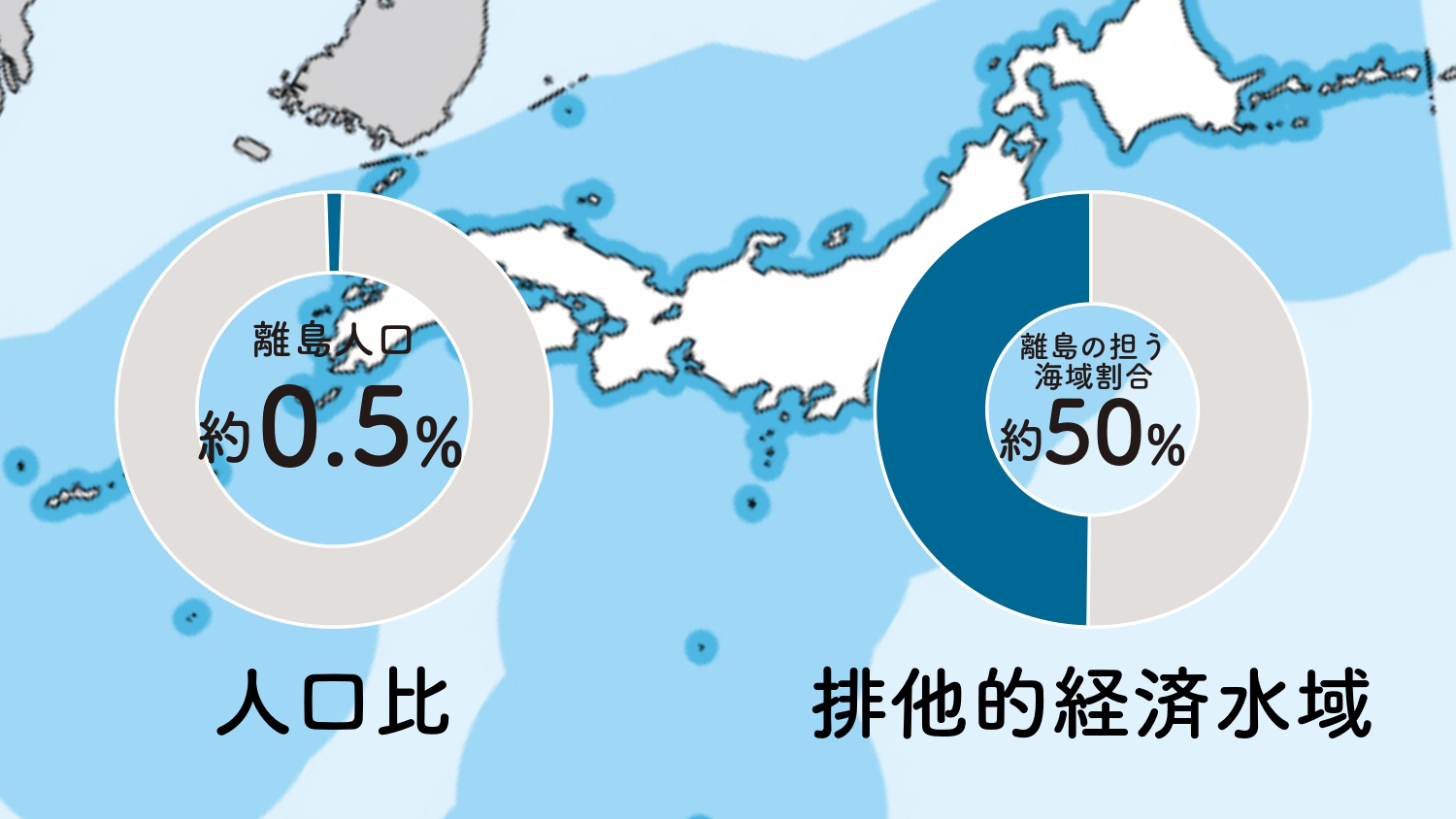 離島は人口比ではわずかかもしれませんが、国土という視点では、非常に大きな割合を占めています。