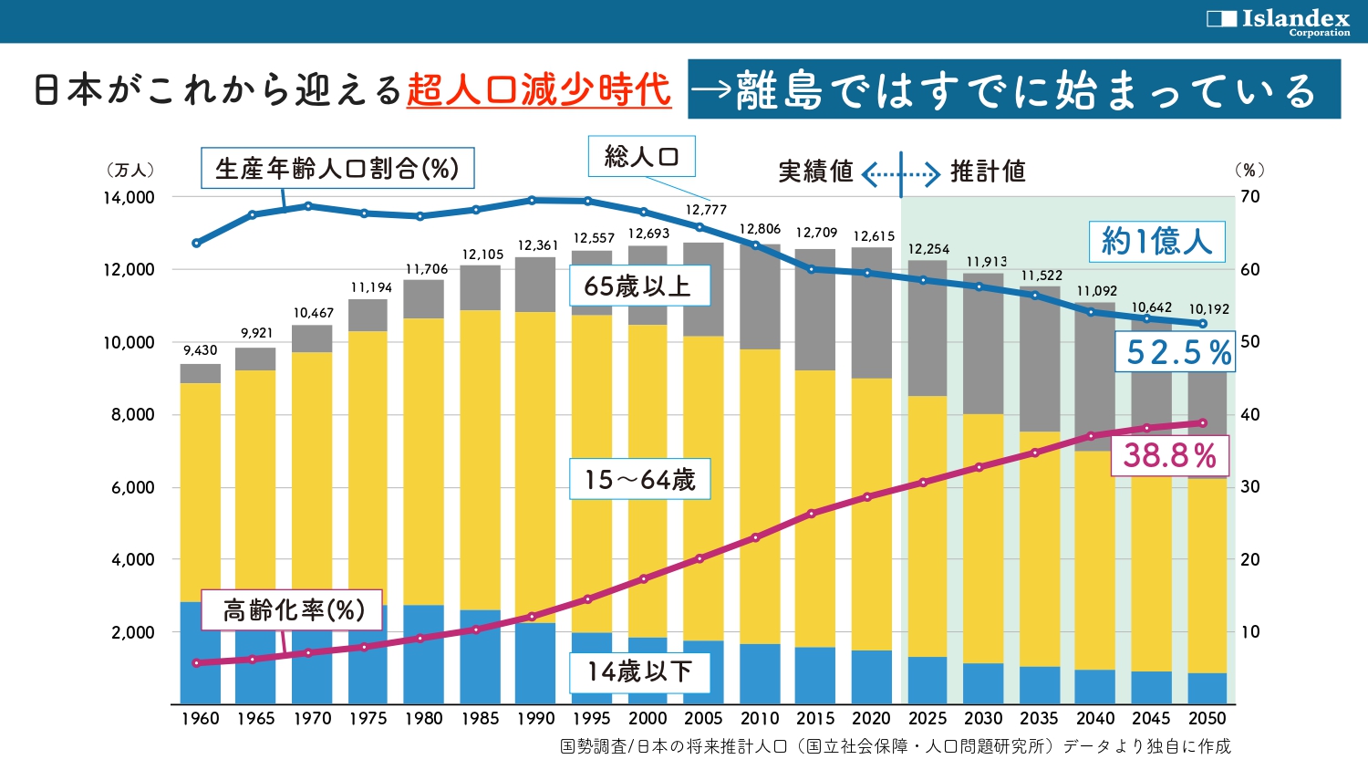 しかし離島では、日本の2050年の状況がすでに起きていると言われています。