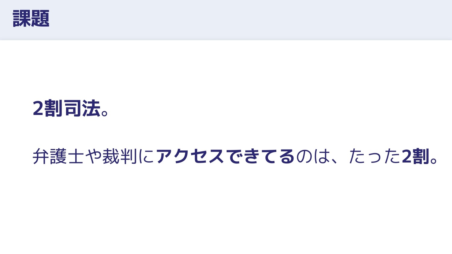 それは司法が抱える深い課題、「2割司法」を解決するためです。