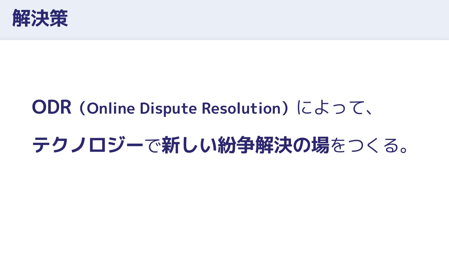 私を含む現役弁護士5名で創業したAtoJが扱うのは、ODR(Online Dispute Resolution)、「テクノロジーによる紛争解決」です。