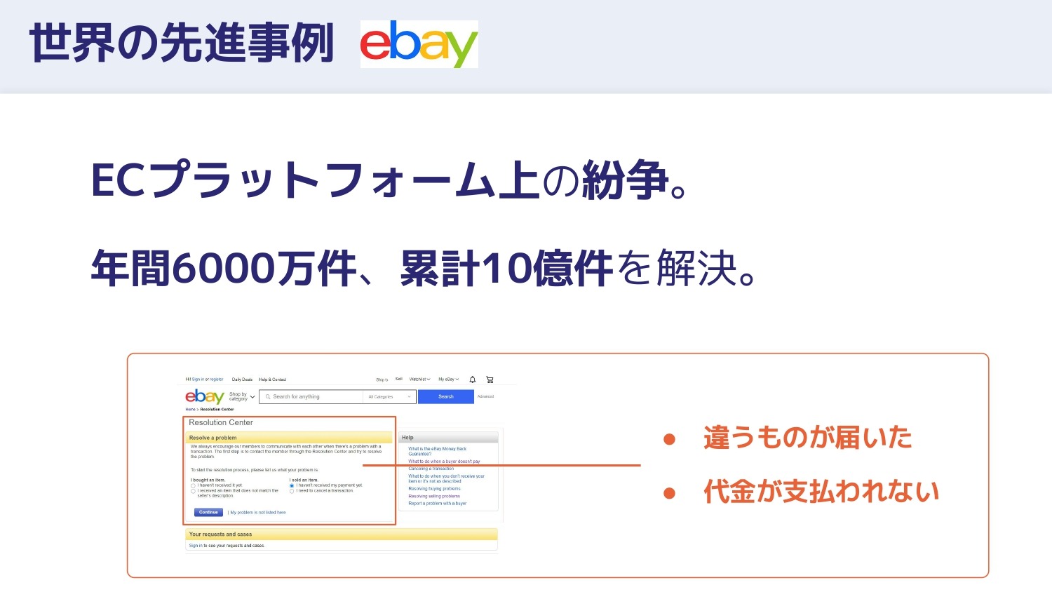 eBay、日本で言うヤフオクでは年間6,000万件ものトラブルが、裁判所ではなくODRで解決されています。