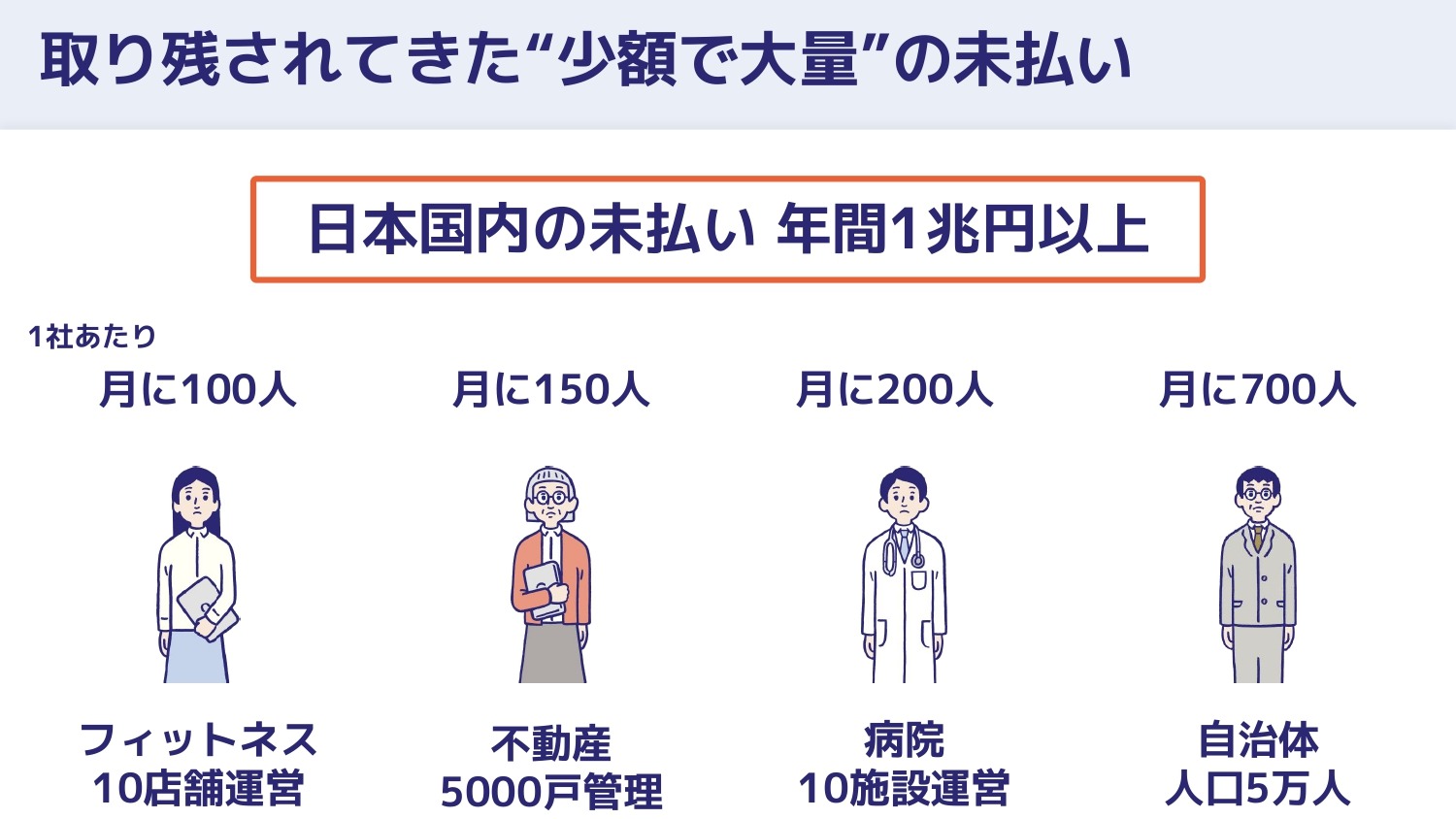 世界で初めて、少額で大量の未払いを抱える事業者に尖らせたto Bプロダクトになっています。