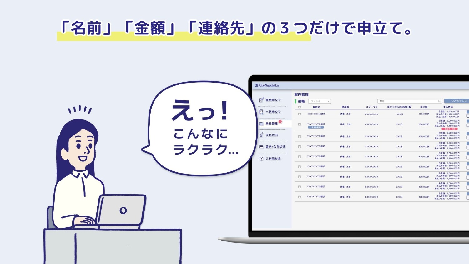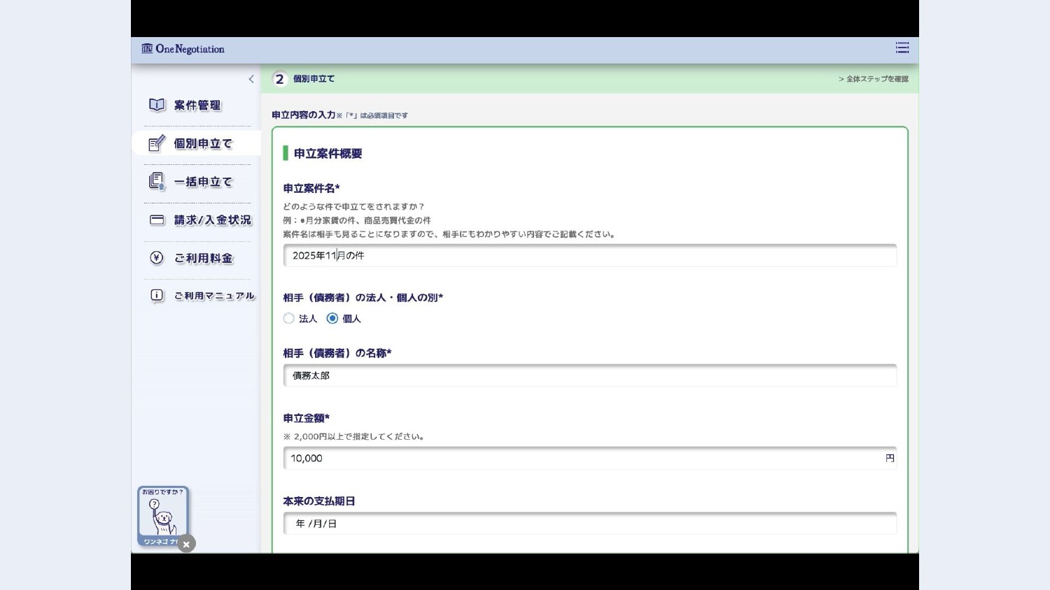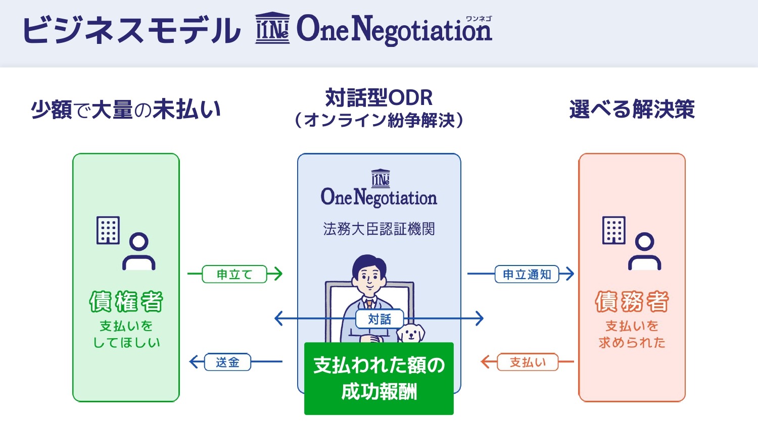 申立てから支払いまでオンライン完結する「ワンネゴ」