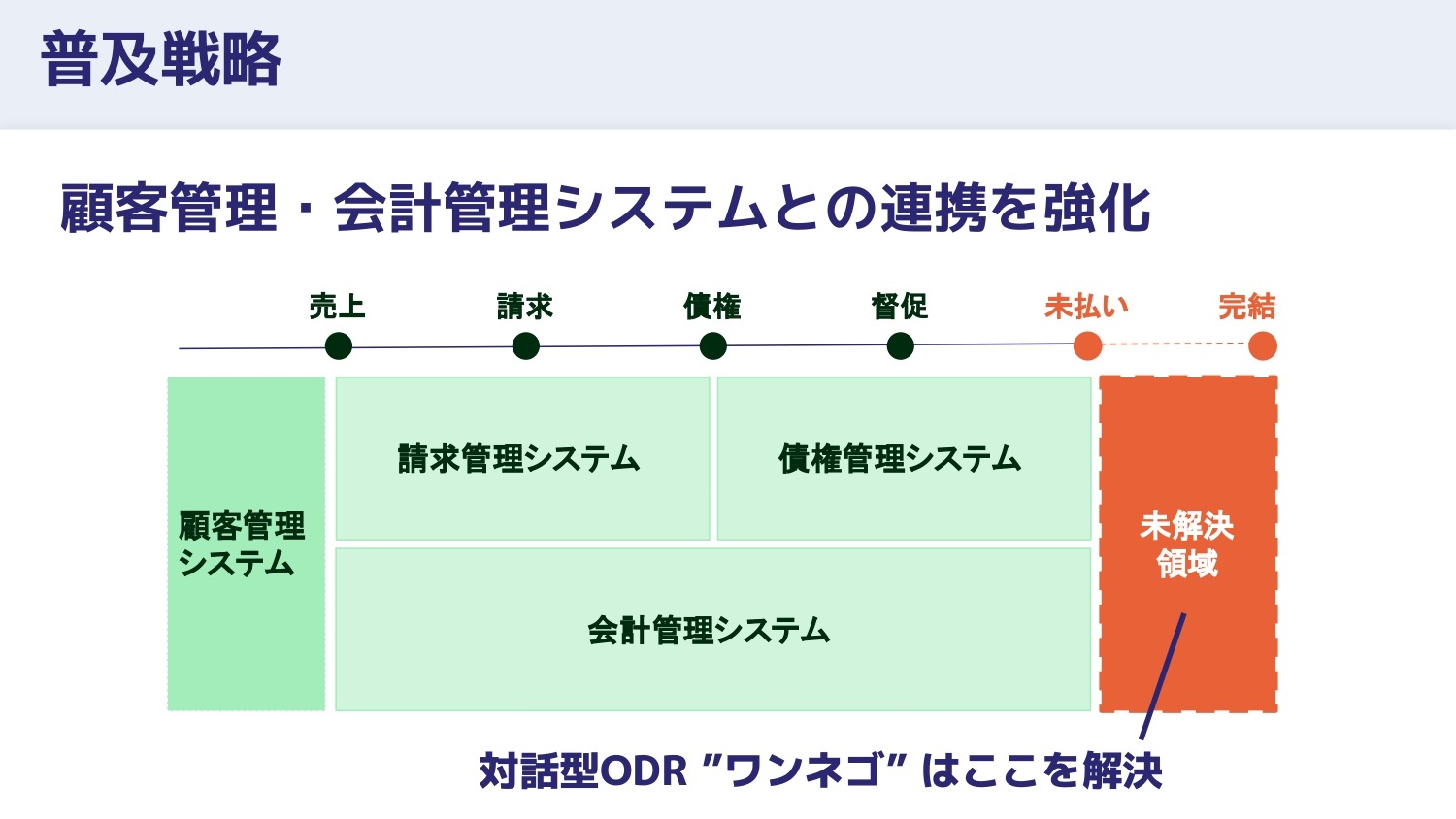 さらに、顧客管理システムとも連携し、対話型ODRは法規制の関係からフィンテック領域で未解決のまま放置されてきた未払い後の世界を対話で解決していきます。